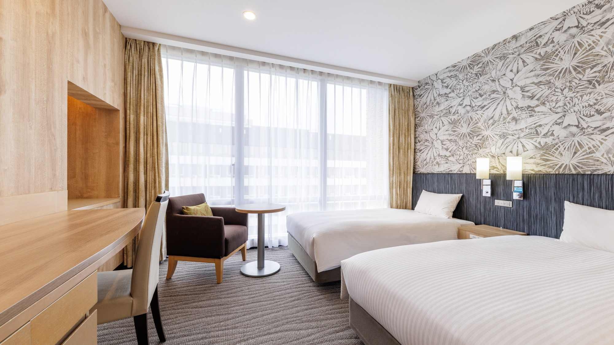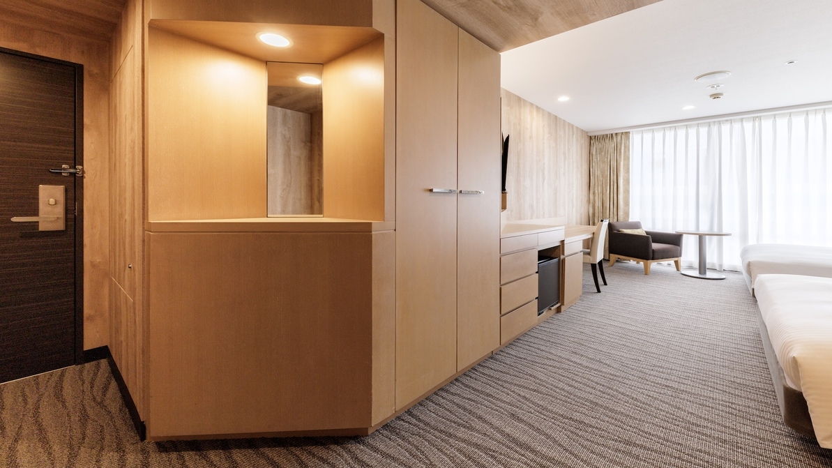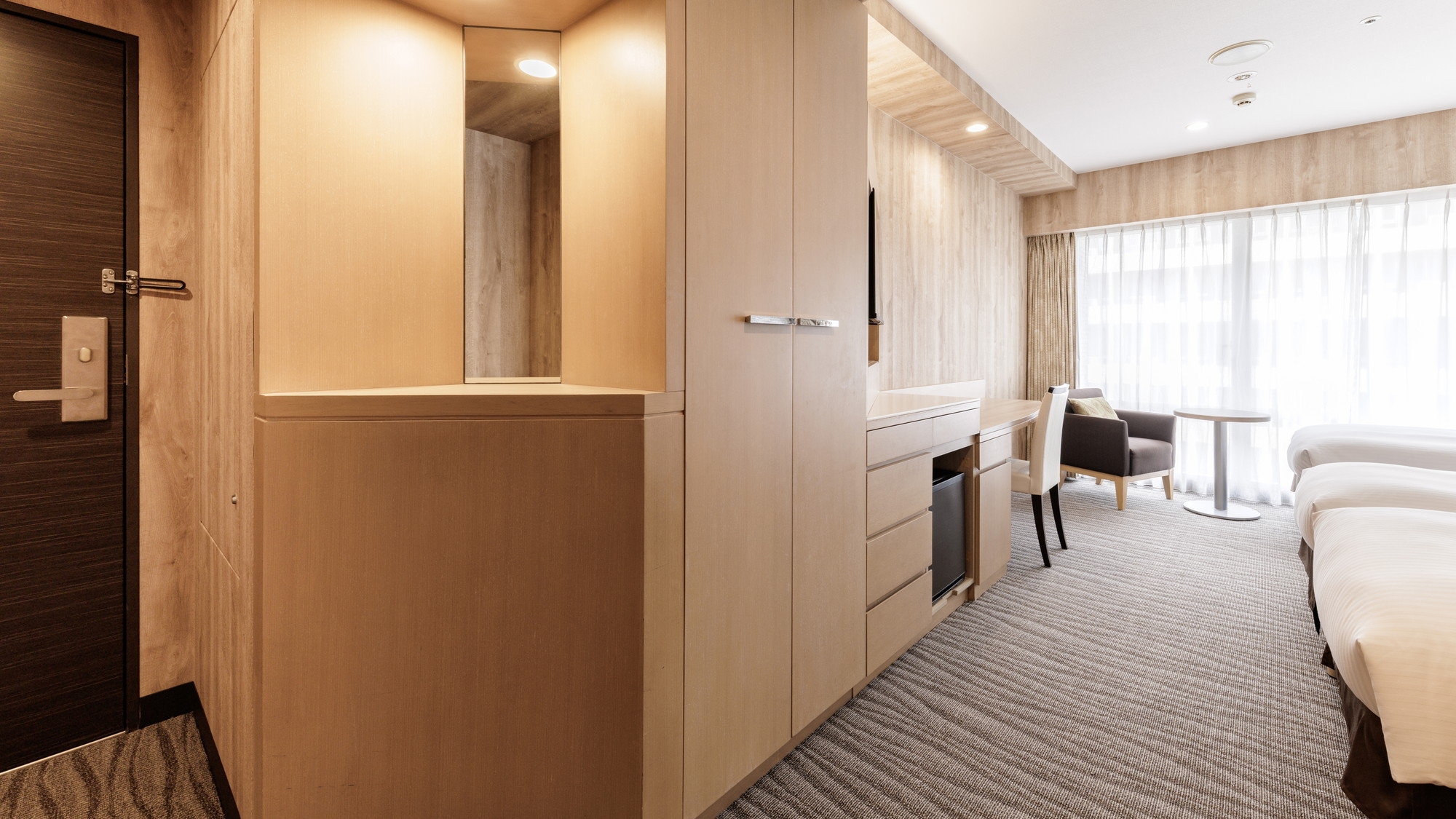 18.8平米のお部屋にシモンズ社製ベッド2台(幅:約110cm)室内バスルーム:ユニットバスタイプ