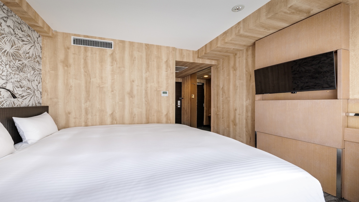 ★バスとトイレが別々のお部屋★17.6平米のお部屋にシモンズ社製ダブルベッド1台(幅:約150cm)