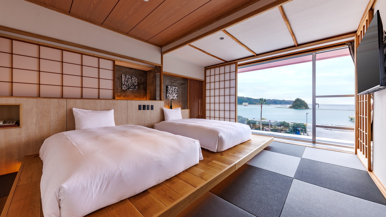 【全室オーシャンビュー】大胆にリノベーションした和室です。伝統的な茶室をイメージした和室や、地中海リゾートテイストを味わえる和室をお愉しみいただけます。