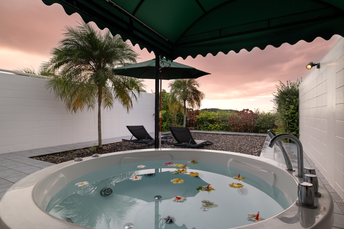 ジャグジーでくつろぎながら、海と空の色が移り変わる贅沢な時間を。