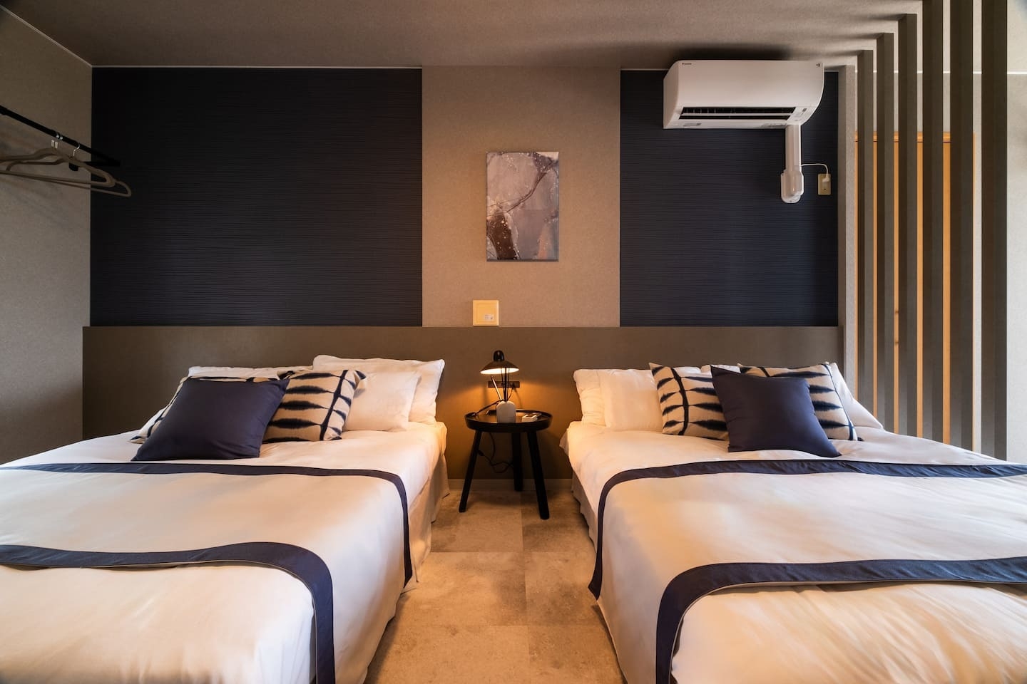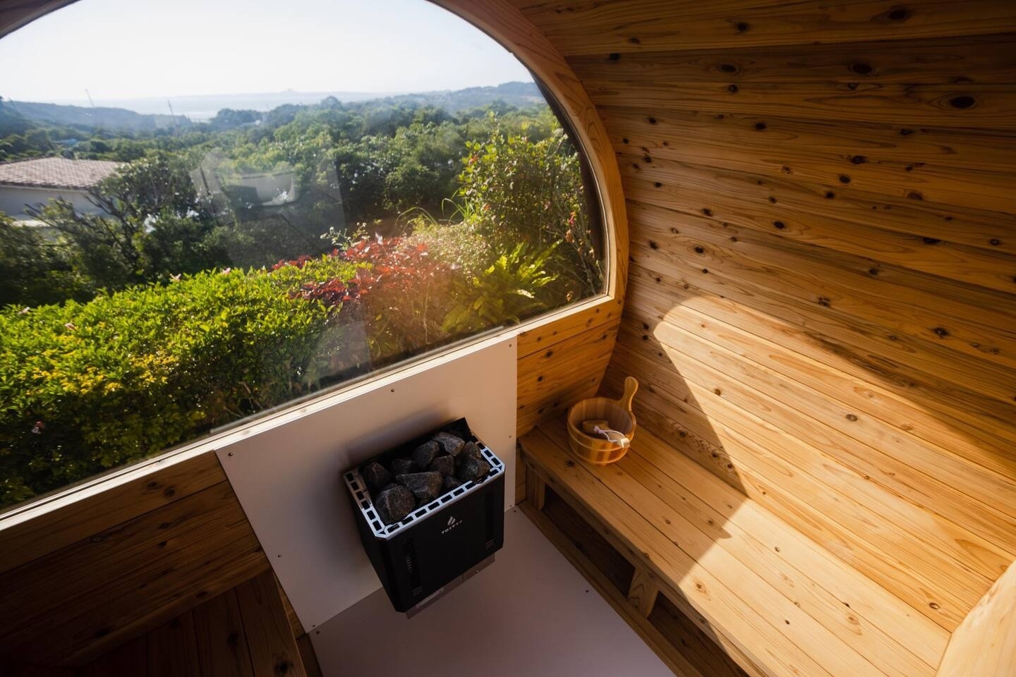 【寝室】ダブルベッド×2、折り畳みベッド×1 、布団×1 【設備】テレビ/WiFi/エアコン/冷蔵庫/電子レンジ/ドライヤー/サウナ/ジャグジー/BBQ(有料)