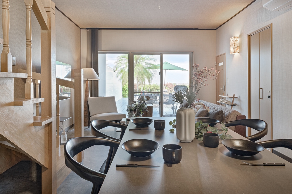 夕方になると、温かなサンセットが部屋に柔らかく差し込み、心が癒されるひとときを楽しむことができます。