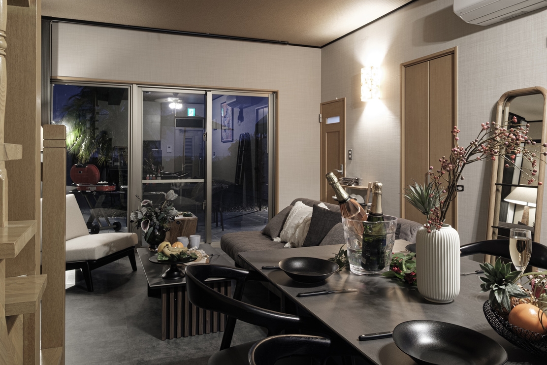 ■BBQは1階屋外テラスでお楽しみください。室内及び1階・敷地内駐車場でのご利用はお控えくださいませ。