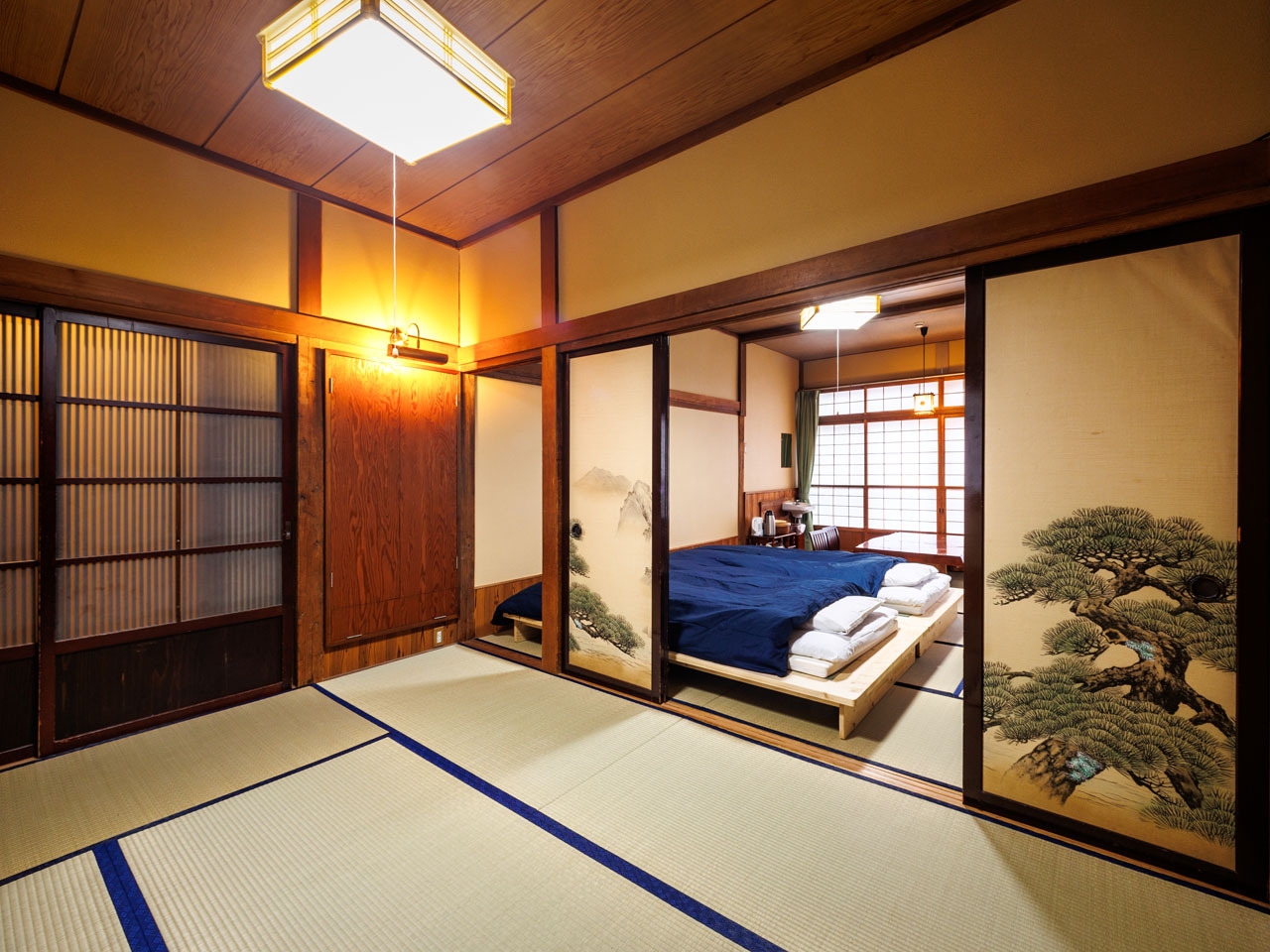 8畳の和室にベッドが2台設置された客室です。