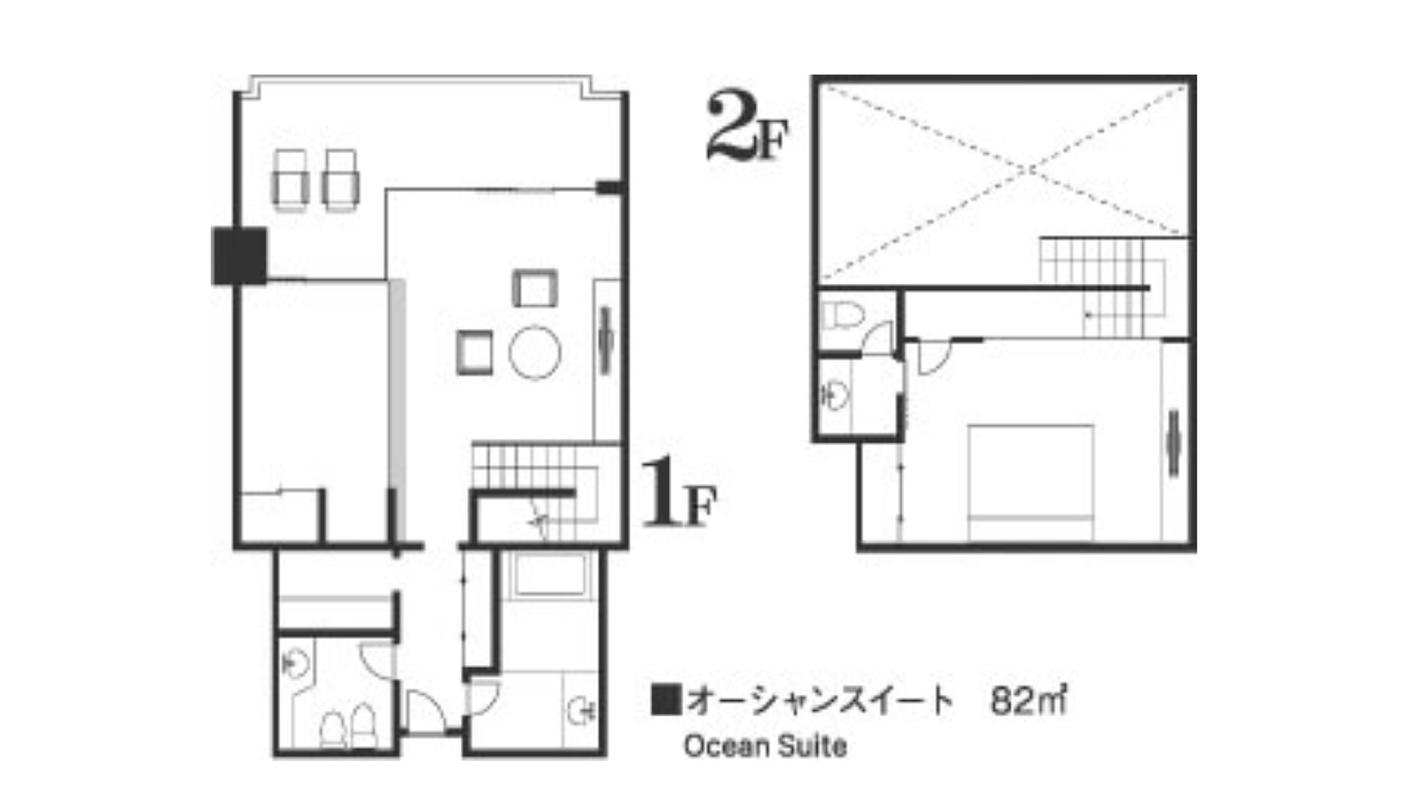 【メインタワー】最上階から望む景観は4組限りの特権!1階リビング+和間、2階ベッドルーム メゾネットタイプの和洋室。1室3名様以上の場合は和布団を1階にご用意