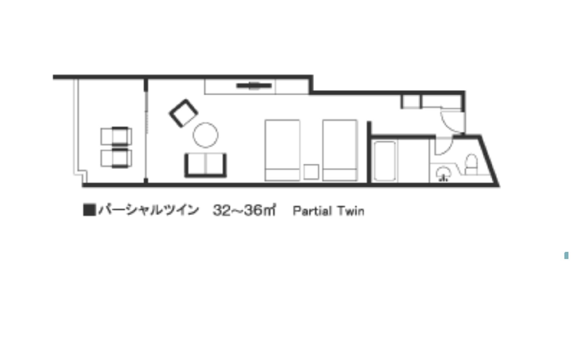 【メインタワー】バルコニー付き、セミダブルベッドを2台配置、海は見えません。洗い場付きバスルーム、レインシャワー完備。1室3名以上の場合は追加ベッドをご用意