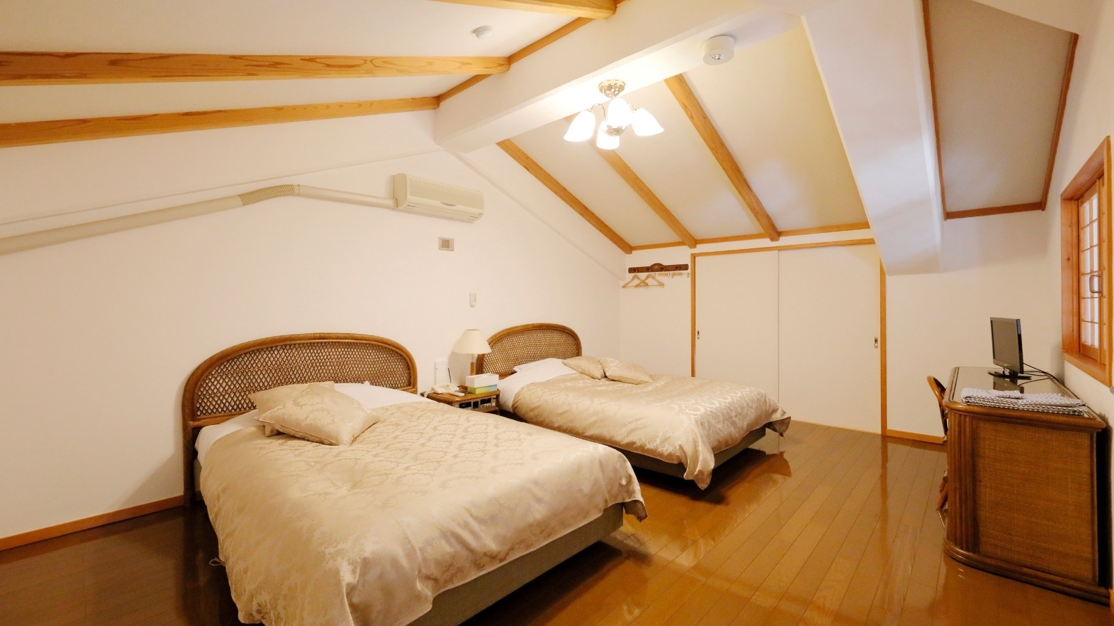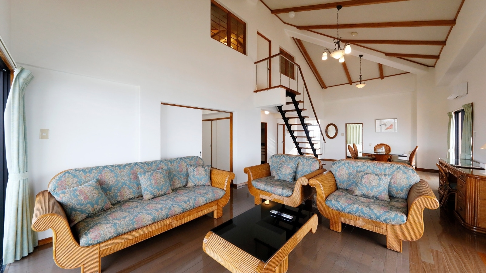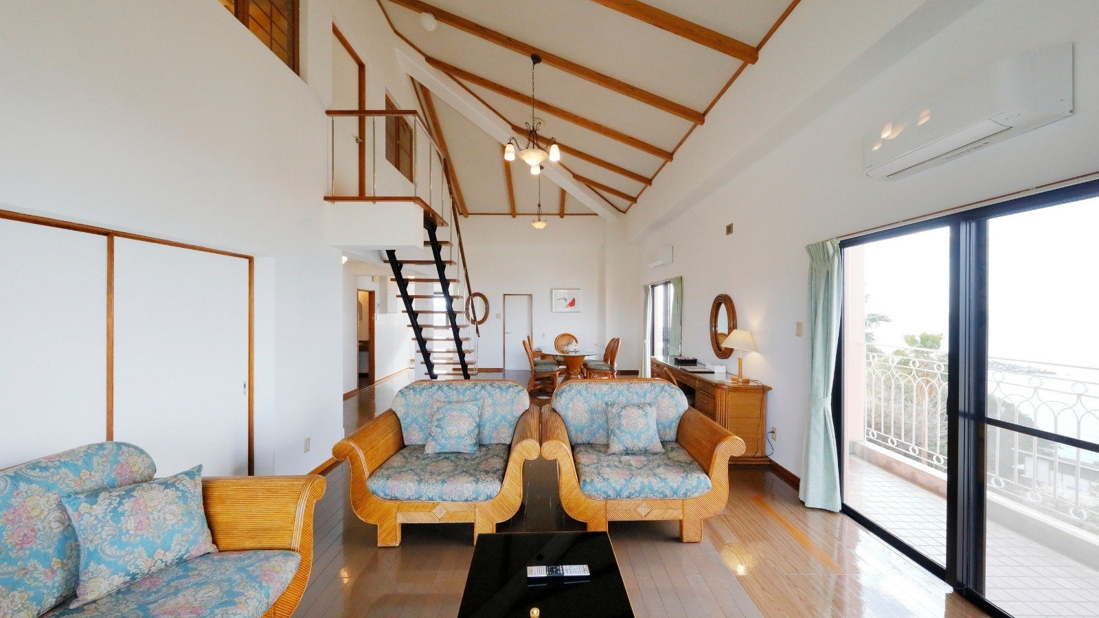 全室オーシャンビュー ホテル最上階(本館4階)、70平米、ロフトタイプ、ご家族でもグループでもゆったりお寛ぎいただけるお部屋です。1階洋室/2階洋室