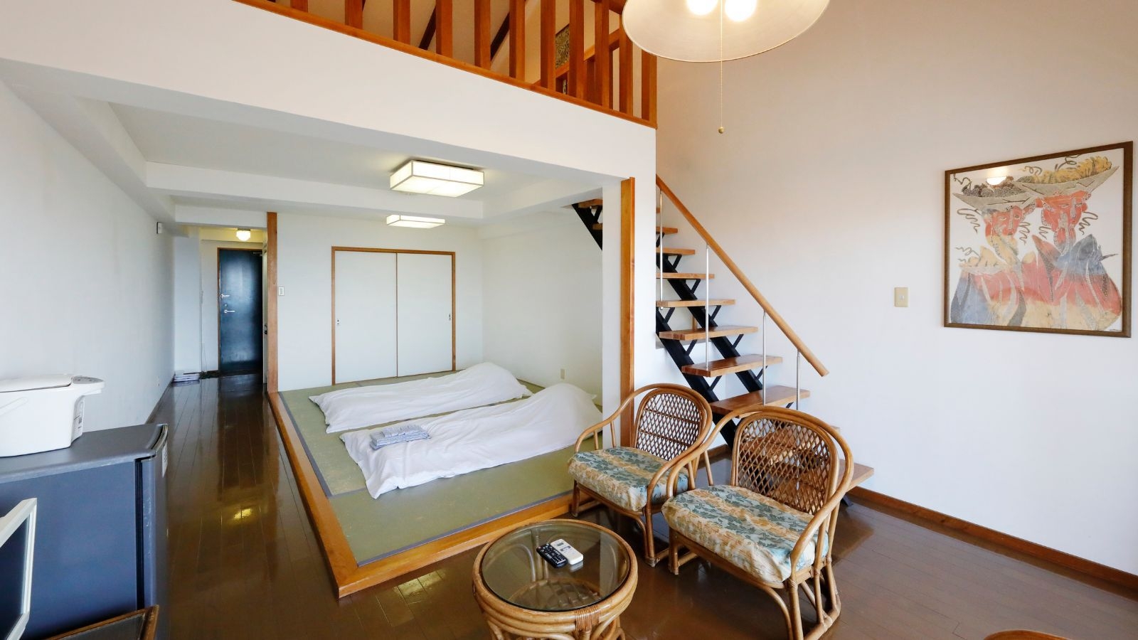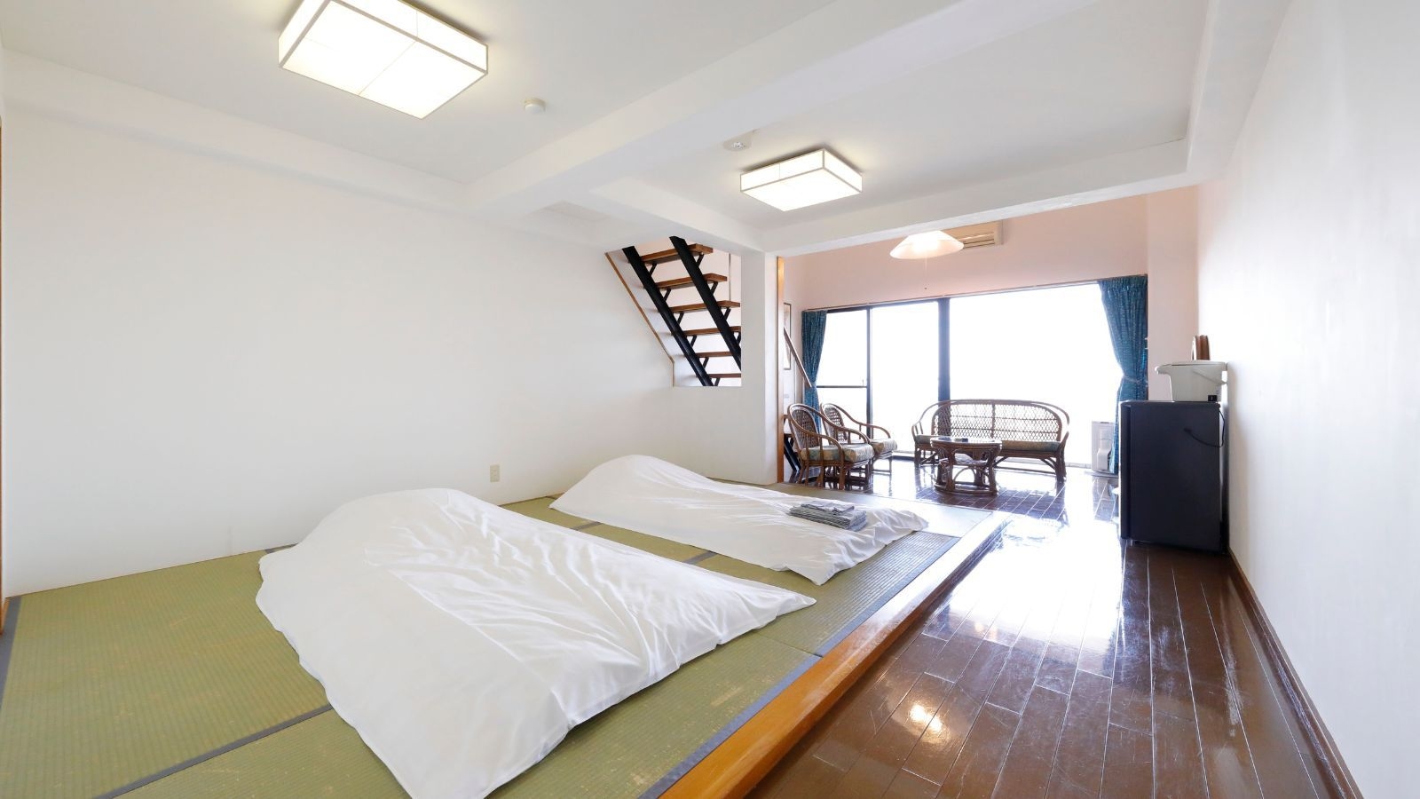 全室オーシャンビュー ホテル最上階(本館4階)、70平米、ロフトタイプ、ご家族でもグループでもゆったりお寛ぎいただけるお部屋です。1階和室/2階和室