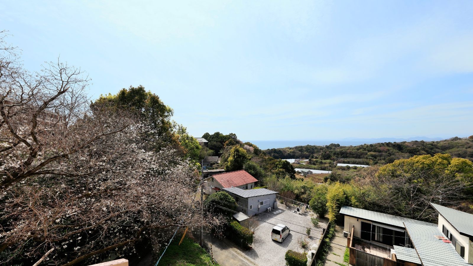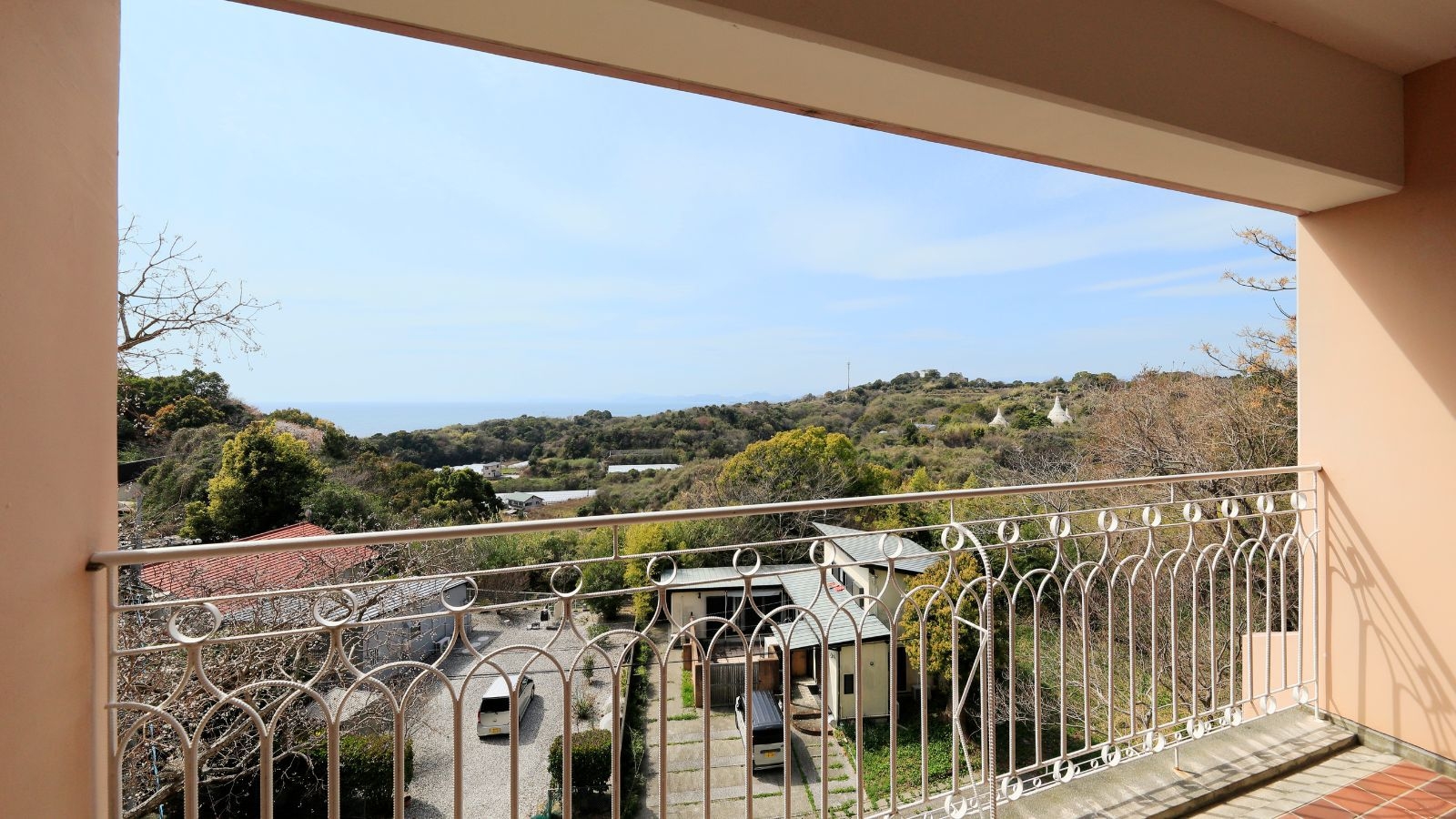 ガーデンテラスからは、高台ならではの開放的な景色が広がり、遠く太平洋を望むことができます
