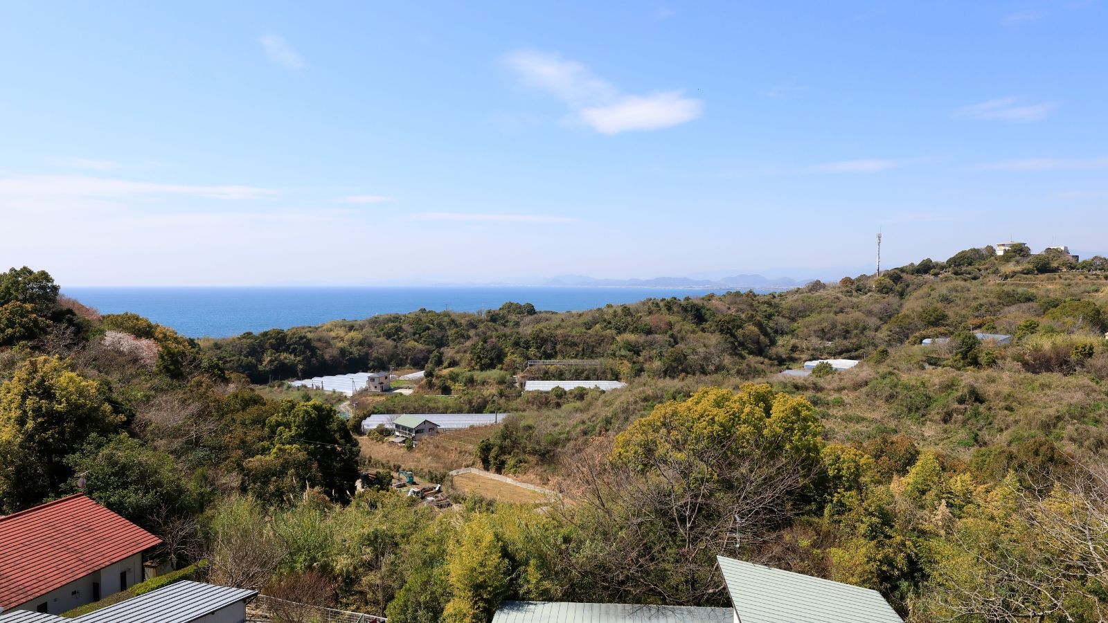 ガーデンテラスからは、高台ならではの開放的な景色が広がり、遠く太平洋を望むことができます。