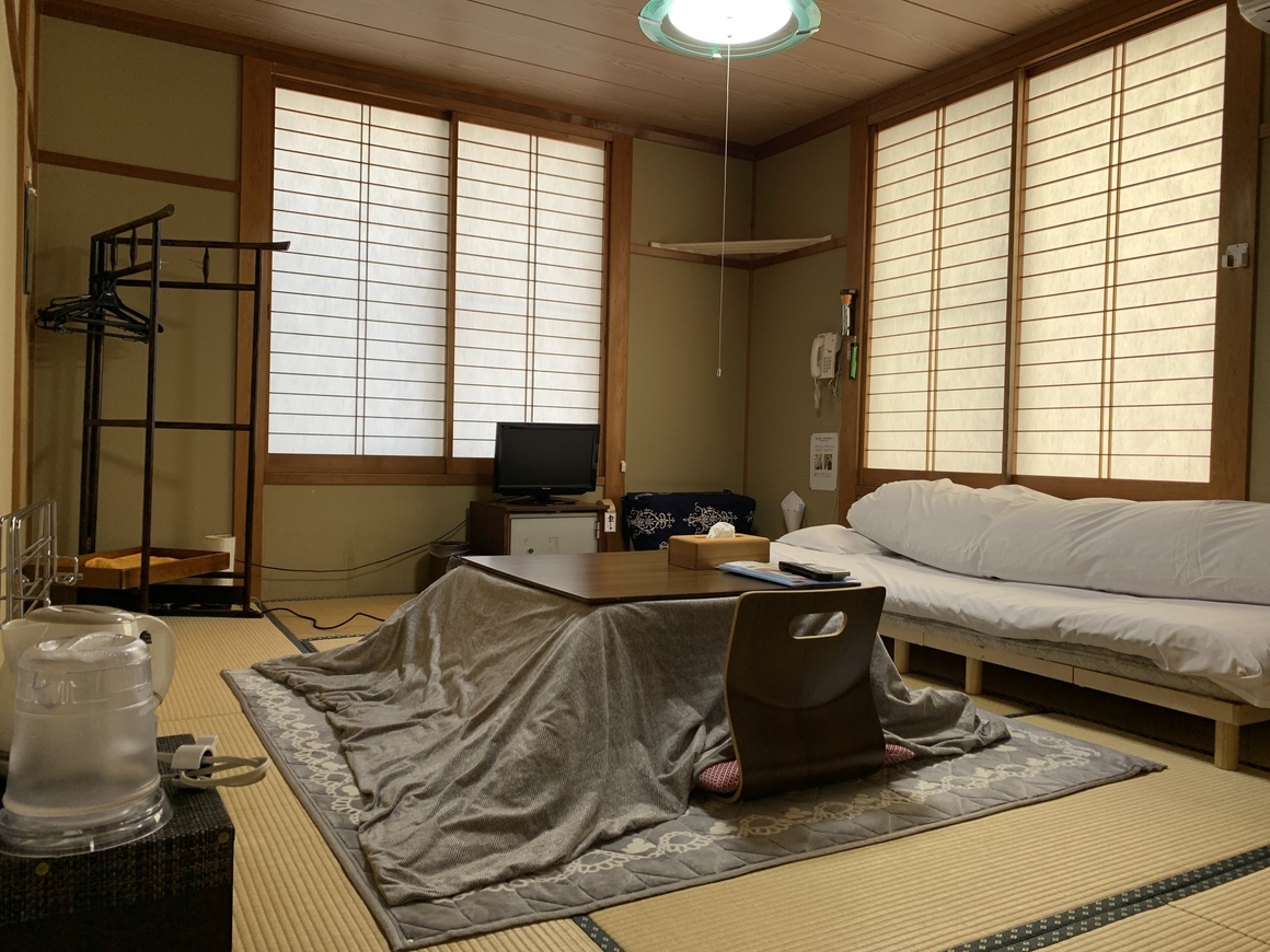 スタンダードな和室。最大3名様までお泊りいただけます。■冬はファンヒーター・こたつあり。無料Wi-Fi■浴衣、タオル、歯ブラシ等 ※共用トイレになります