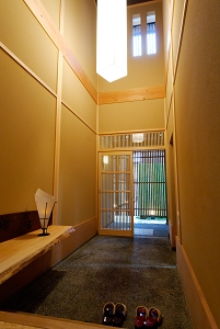 茶室のある町家にご予約のお客様には、文化財の改修も行う職人によって作られた遊び心もある特別なお部屋にてご宿泊頂きます。手前の和室にて京会席をお召し上がりいただきますが、ご希望がございましたら最後の水物は奥の小間にて薄茶と共にお出しすることも可能です。4名様でご宿泊の場合は2名様2室となります。