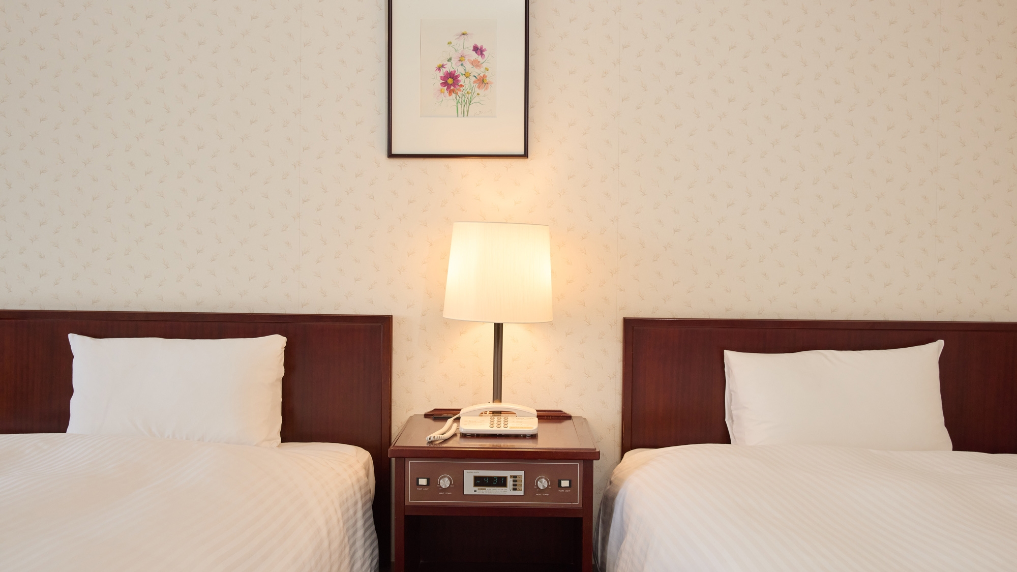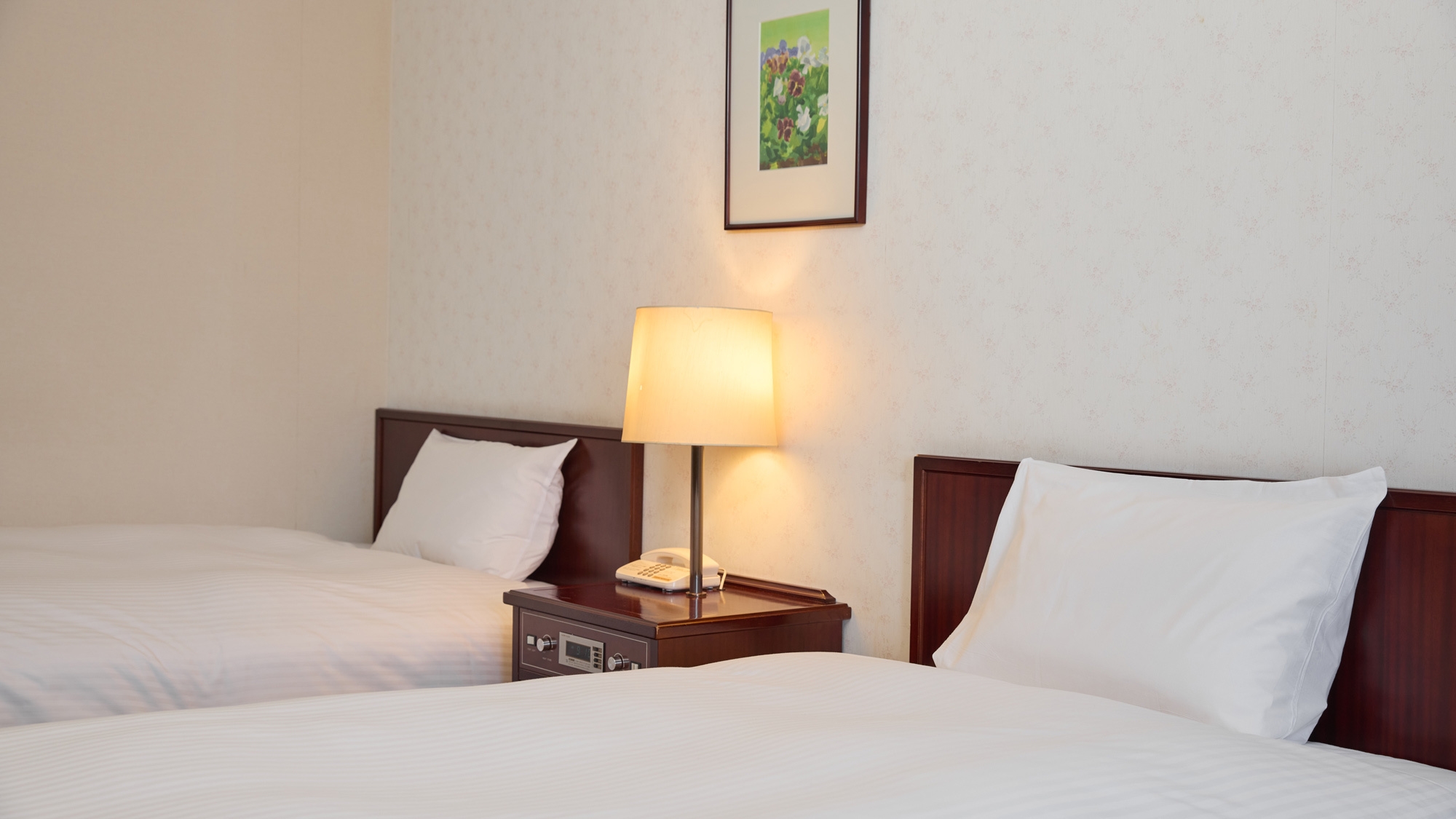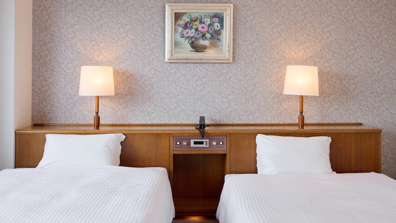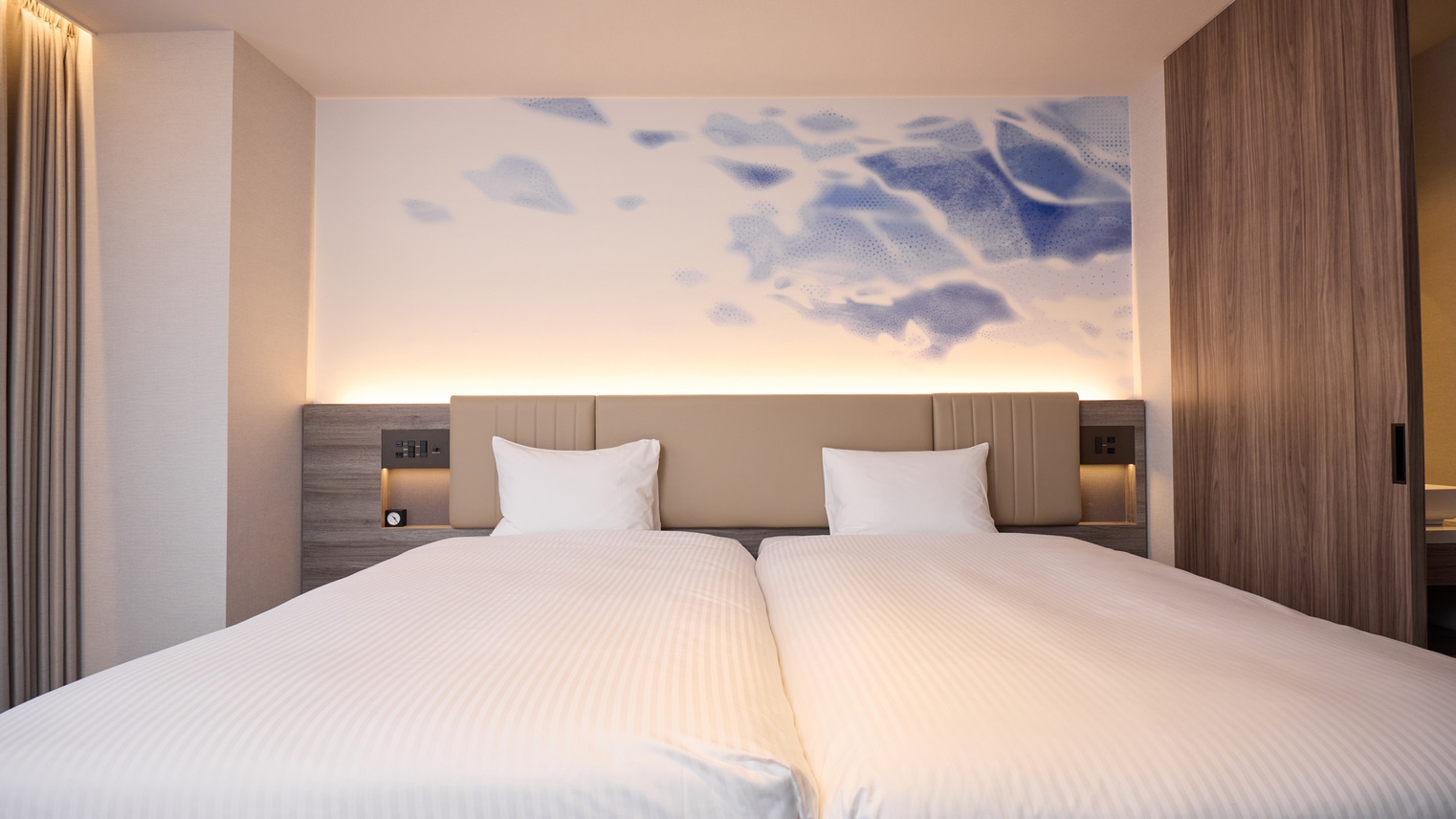 11階/12階に位置する33平米の洋室。正ベッド2台(1200×2060)。バストイレ洗面所は別々タイプ。全室禁煙、※2024年4月リニューアルしたお部屋です