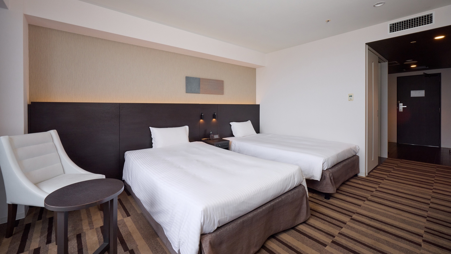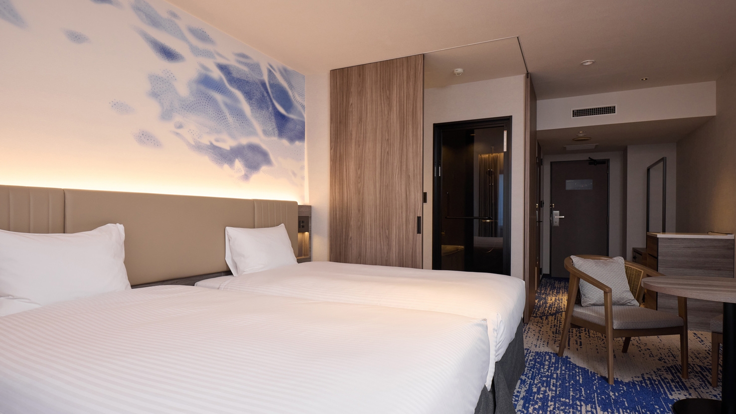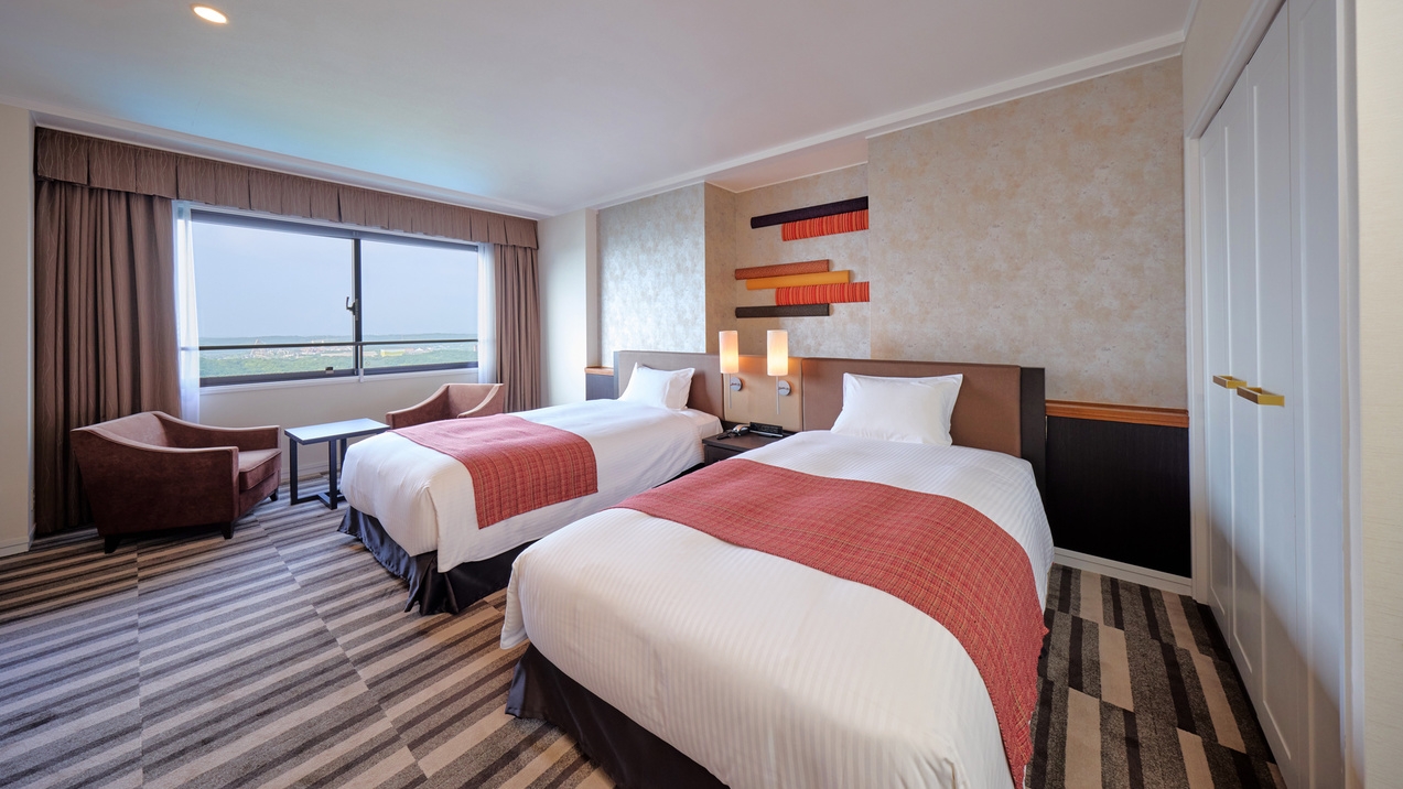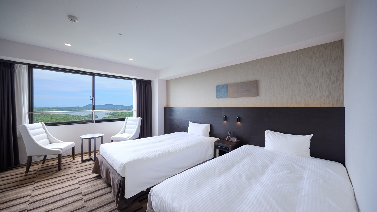 11階/12階に位置する33平米の洋室。正ベッド2台(1200×2060)。バストイレ洗面所は別々タイプ。全室禁煙、※2024年4月リニューアルしたお部屋です