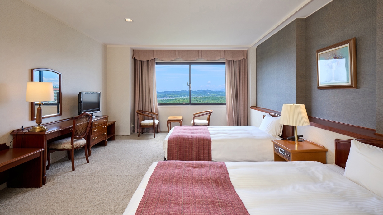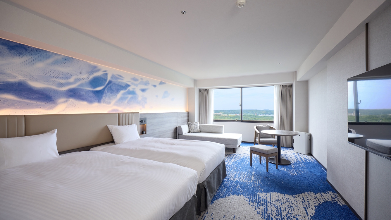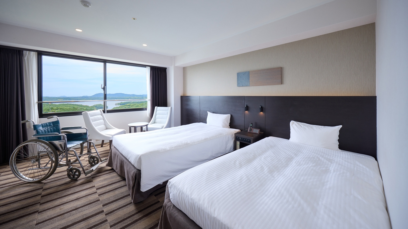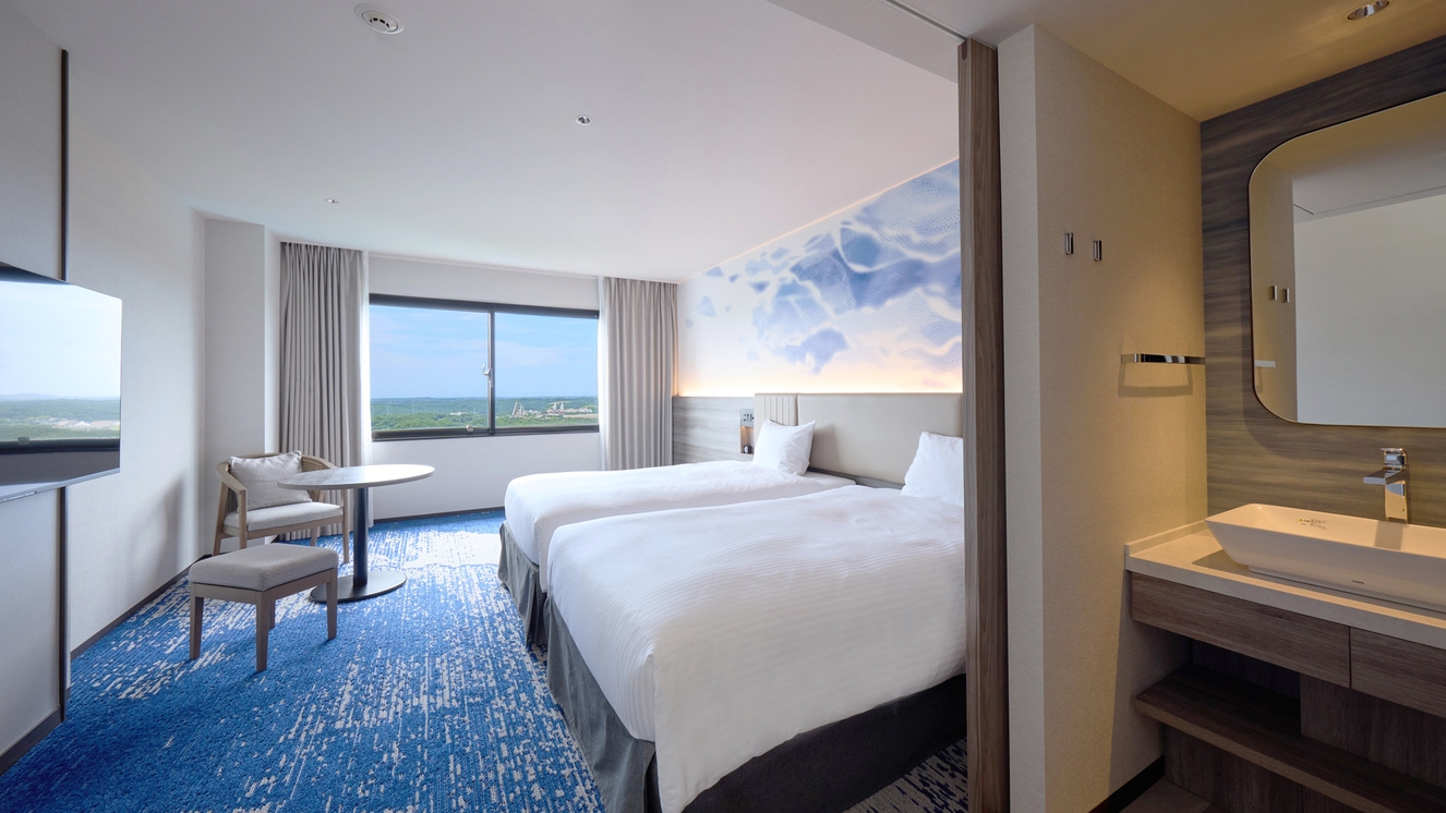 11階/12階に位置する33平米の洋室。正ベッド2台(1200×2060)。バストイレ洗面所は別々タイプ。全室禁煙、※2024年4月リニューアルしたお部屋です