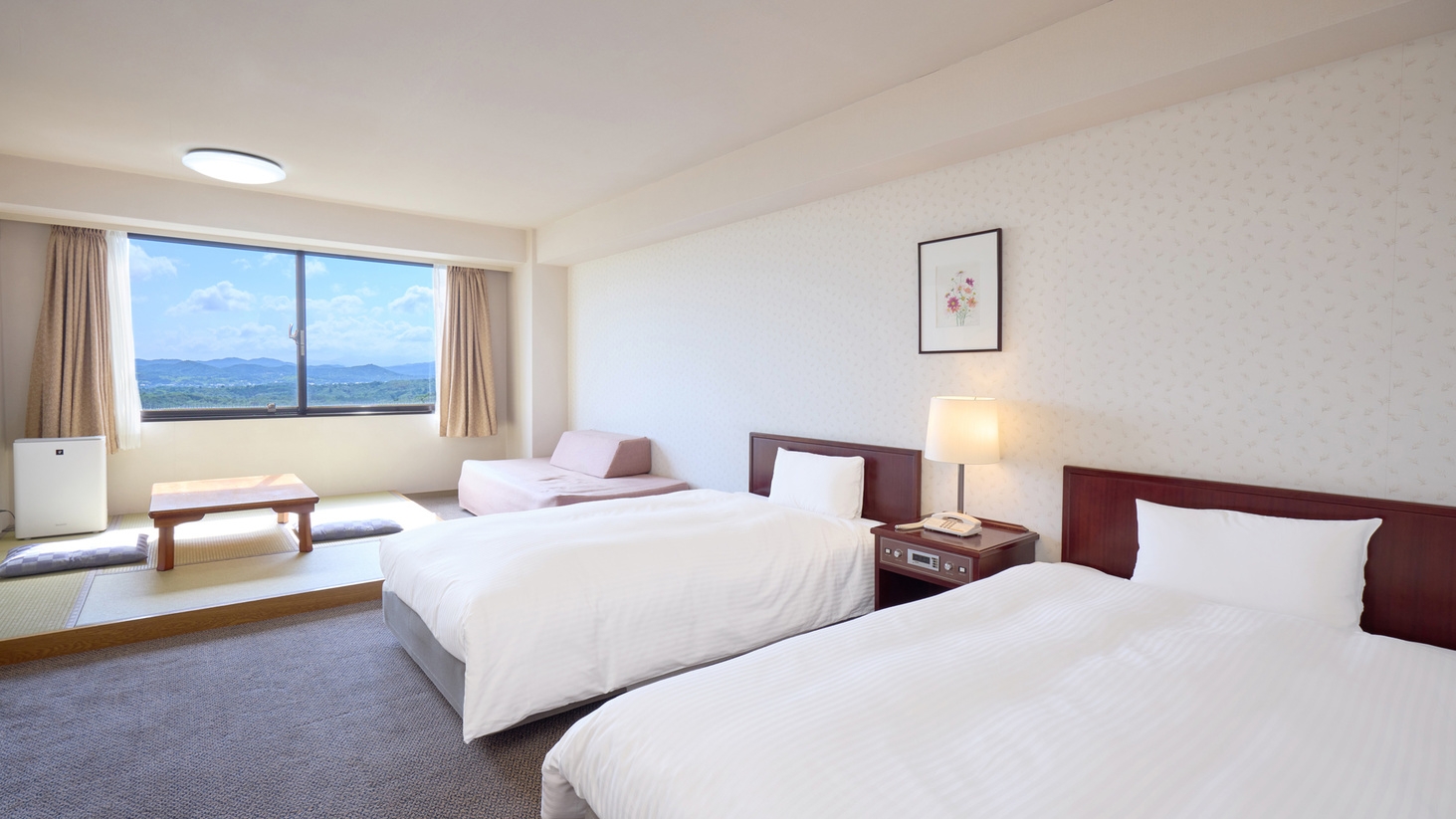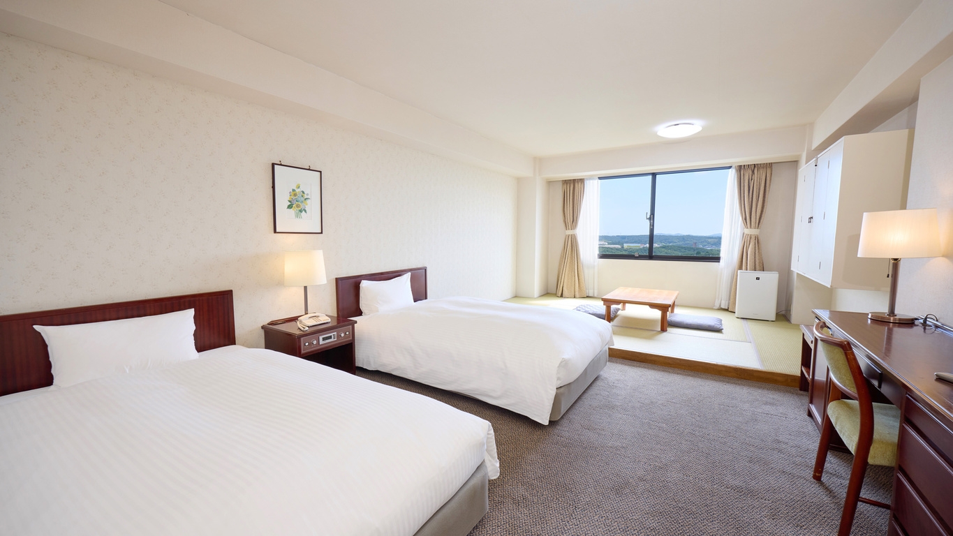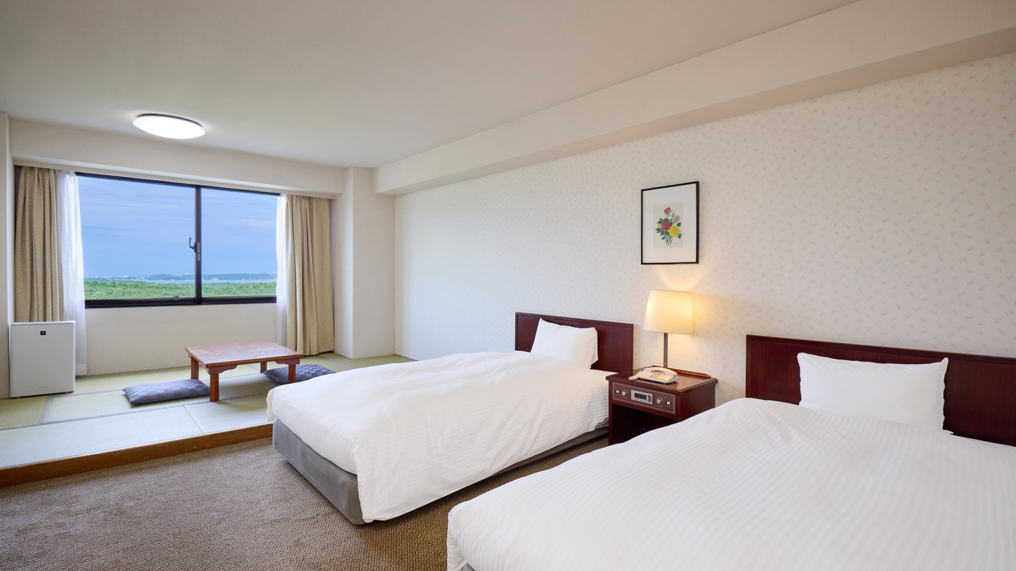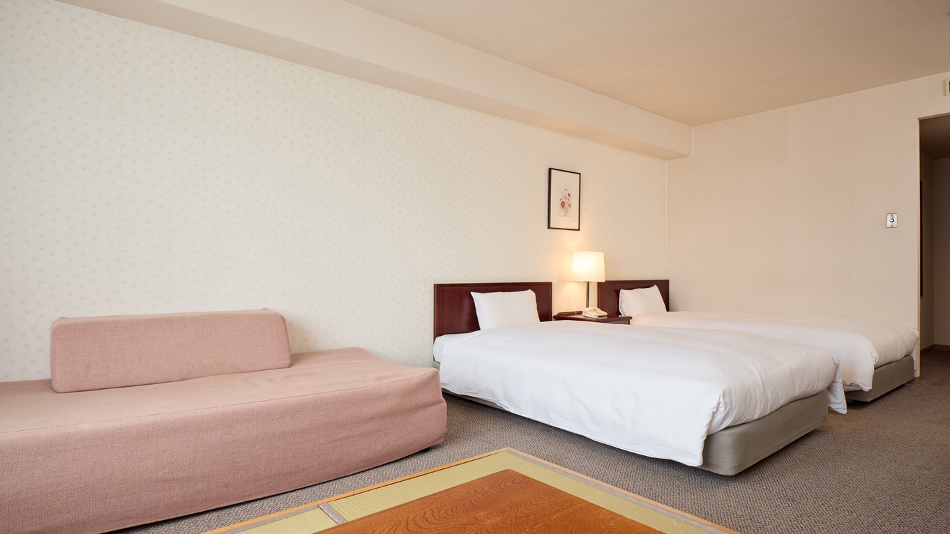 7階に位置する36平米の和洋室、正ベッド×2台+6畳の和室(最大布団3枚)ユニットバス手すりあり、段差あり(約25CM)。全室禁煙、※こちらの部屋タイプは未改装