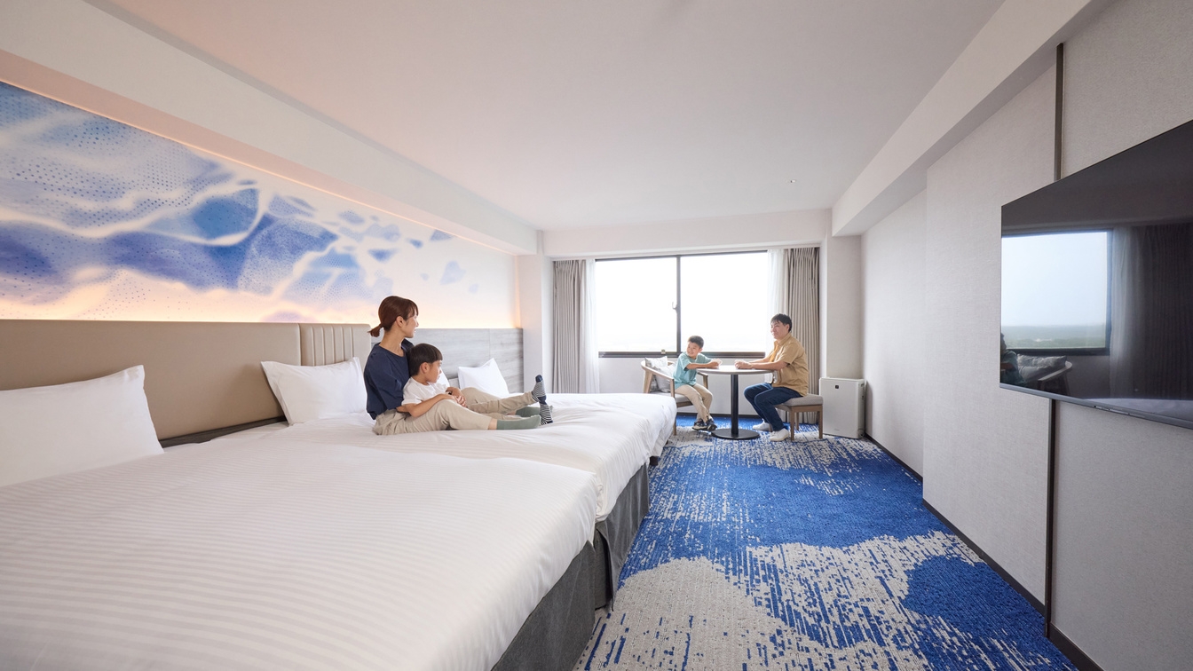 7階に位置する36平米の和洋室正ベッド×2台+6畳の和室/正ベッド2台+エキストラ1台+4.5畳の2種類有。ユニットバス。全室禁煙、※こちらの部屋タイプは未改装
