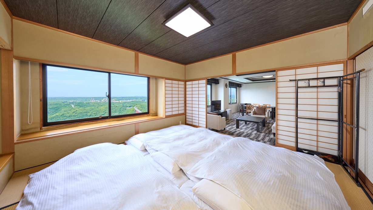 11階に位置する144平米の洋室正ベッド2台+和室8畳+リビング。バストイレ洗面所は別々タイプ。全室禁煙、個別空調対応。2世代、3世代旅行.お友達との旅行に最適