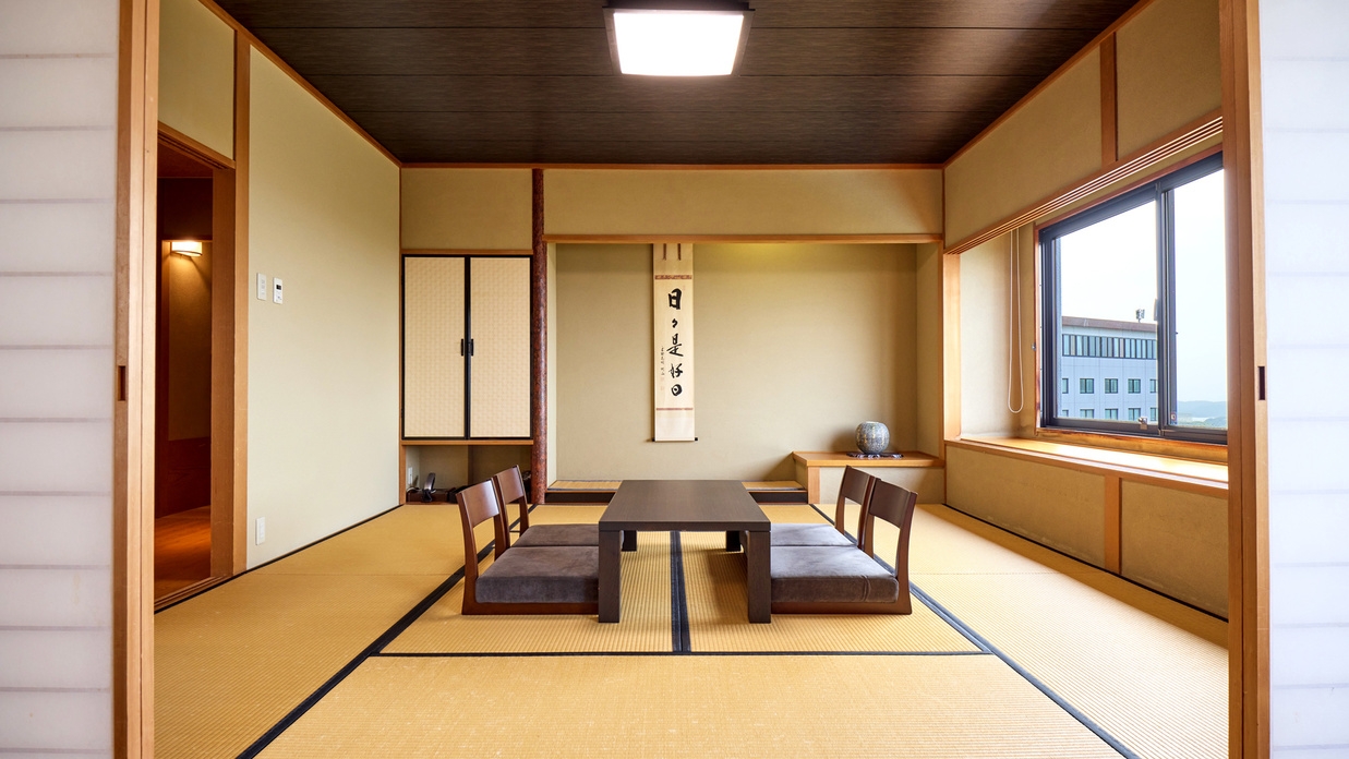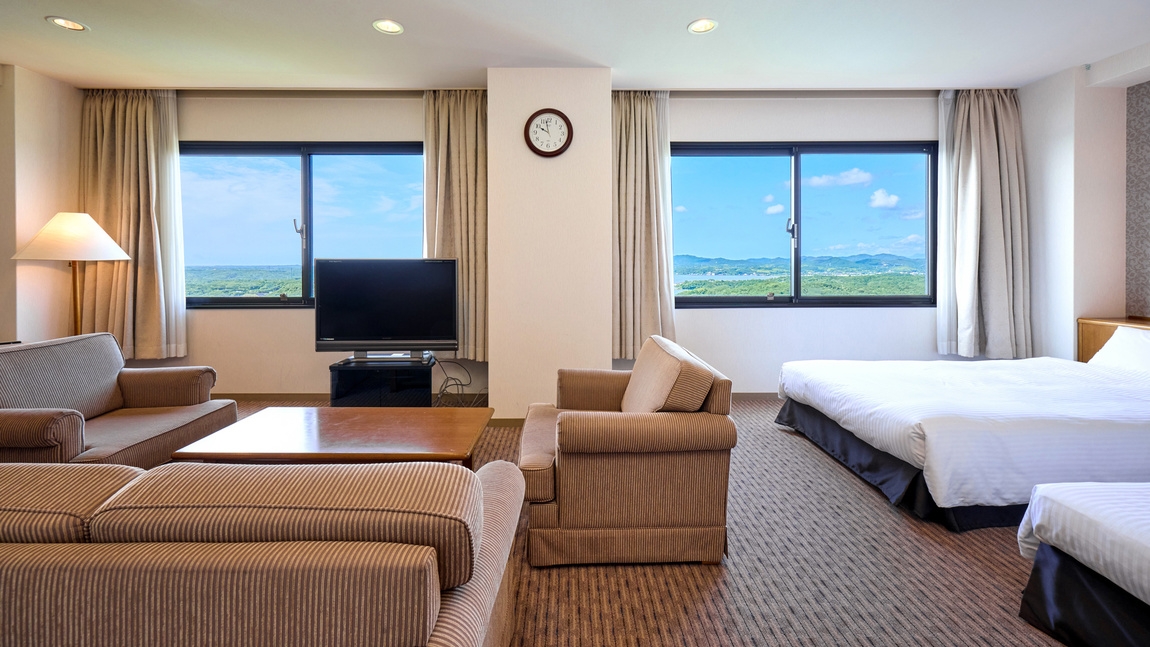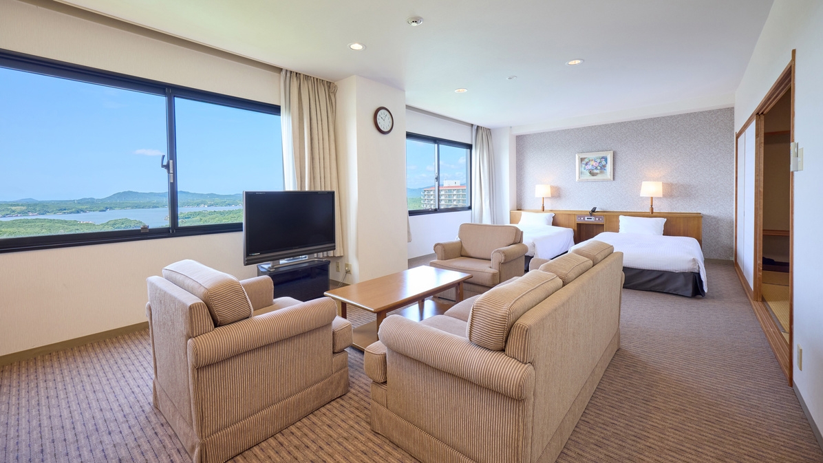 11階に位置する72平米のスイートルーム。正ベッド2台のあるリビング+和室8畳。バストイレ洗面所は別々タイプ。全室禁煙、個別空調対応※こちらの部屋タイプは未改装