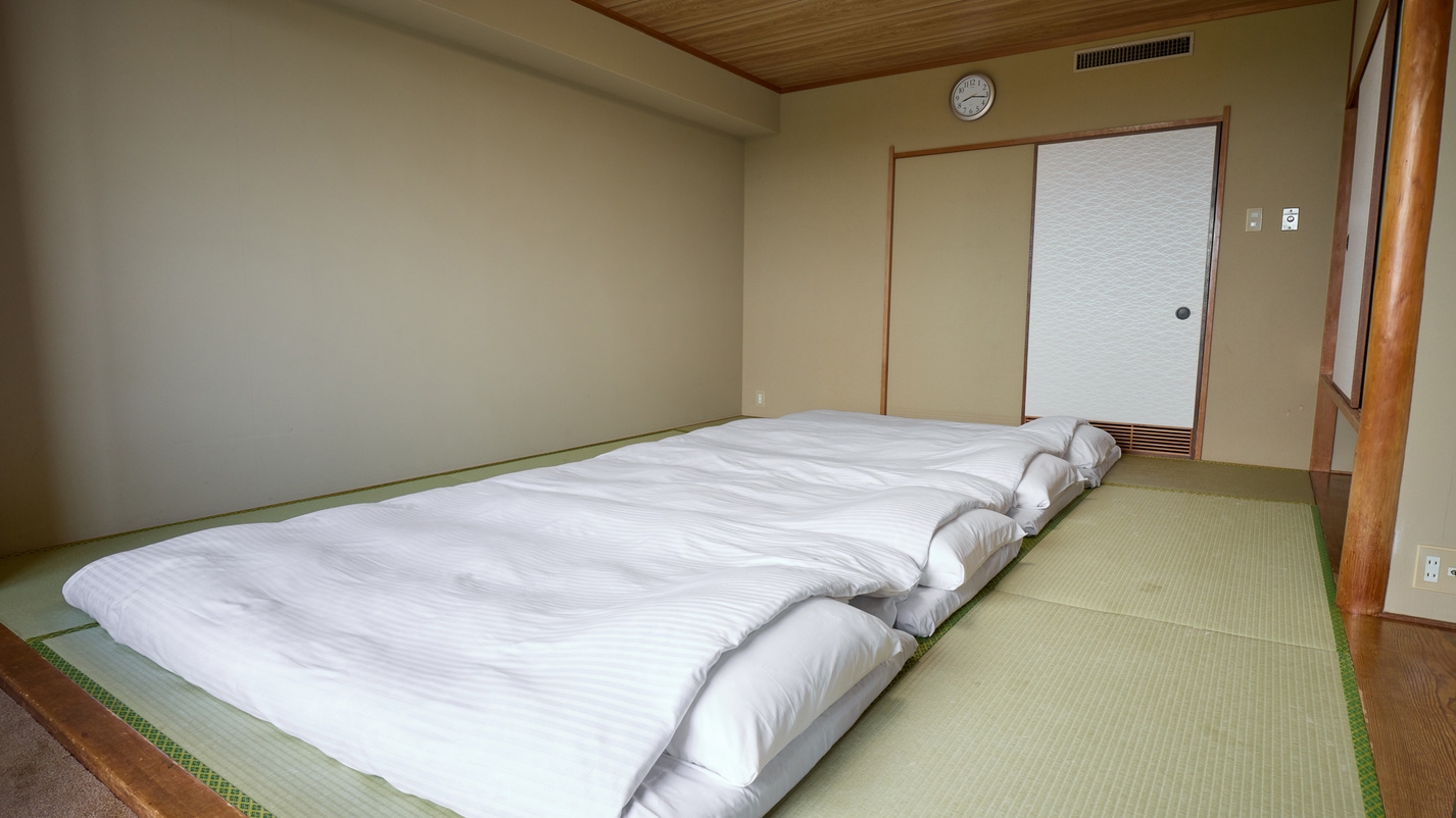 5階〜6階に位置する36平米の和室、布団最大4組(布団はセルフでお願いしております)ユニットバス(入口段差25CMあり)。全室禁煙、※こちらの部屋タイプは未改装
