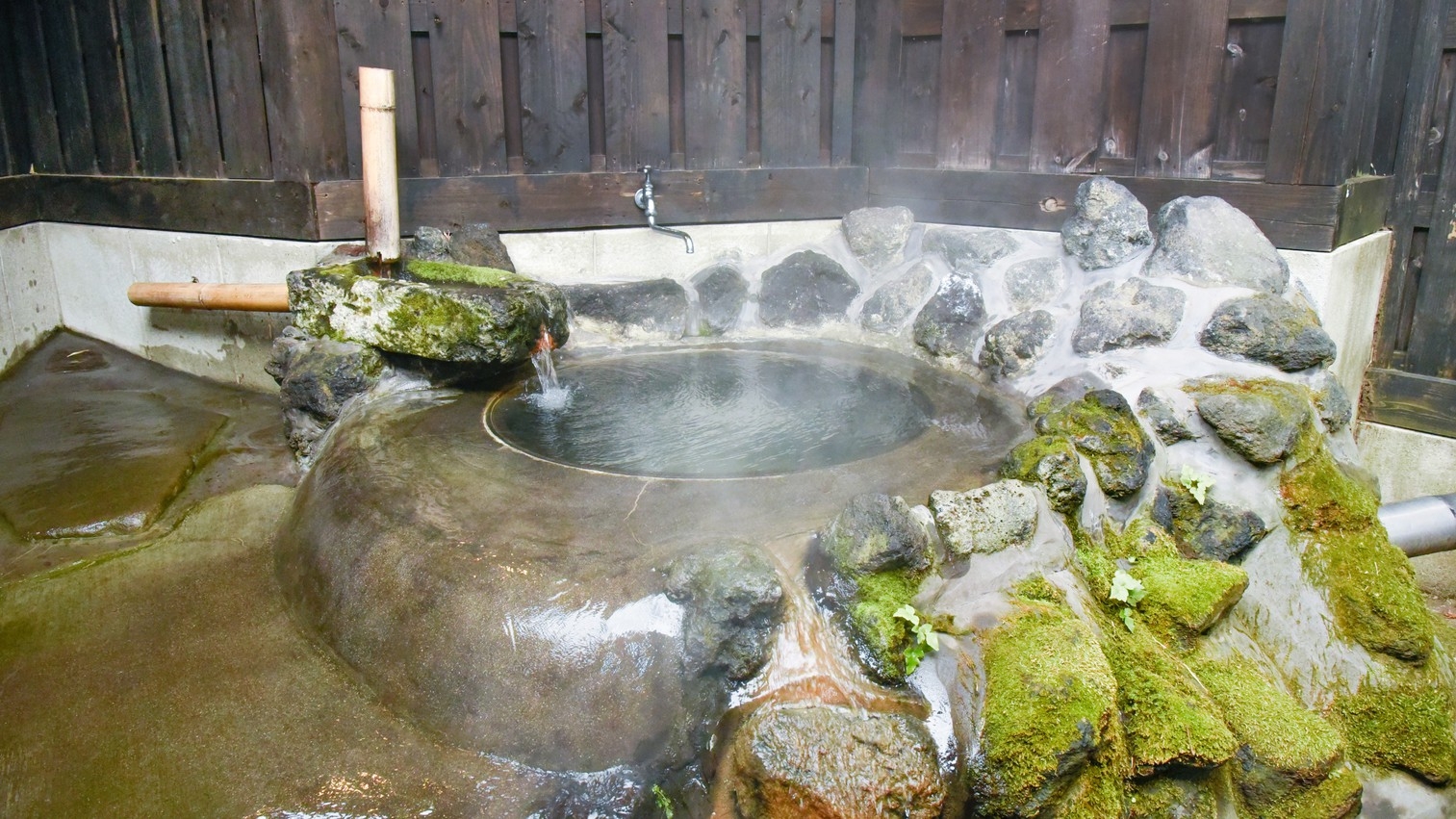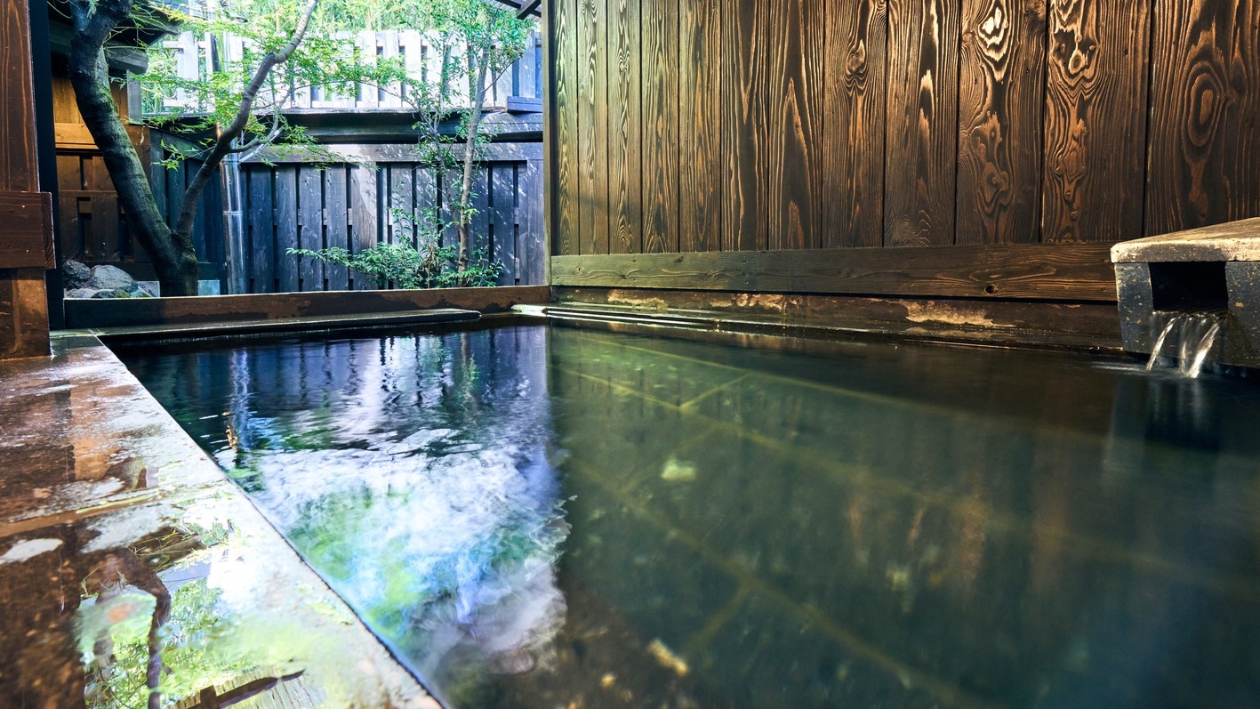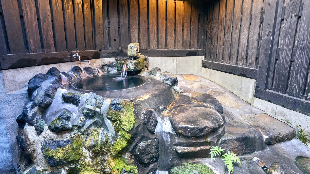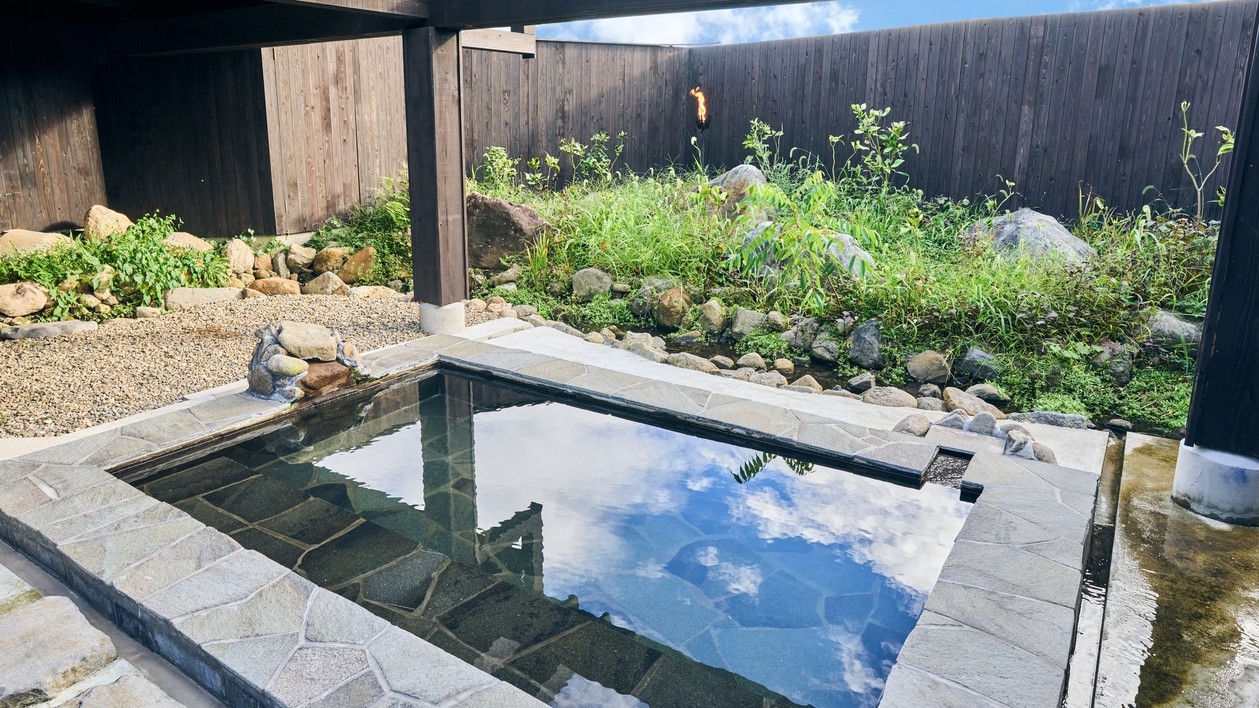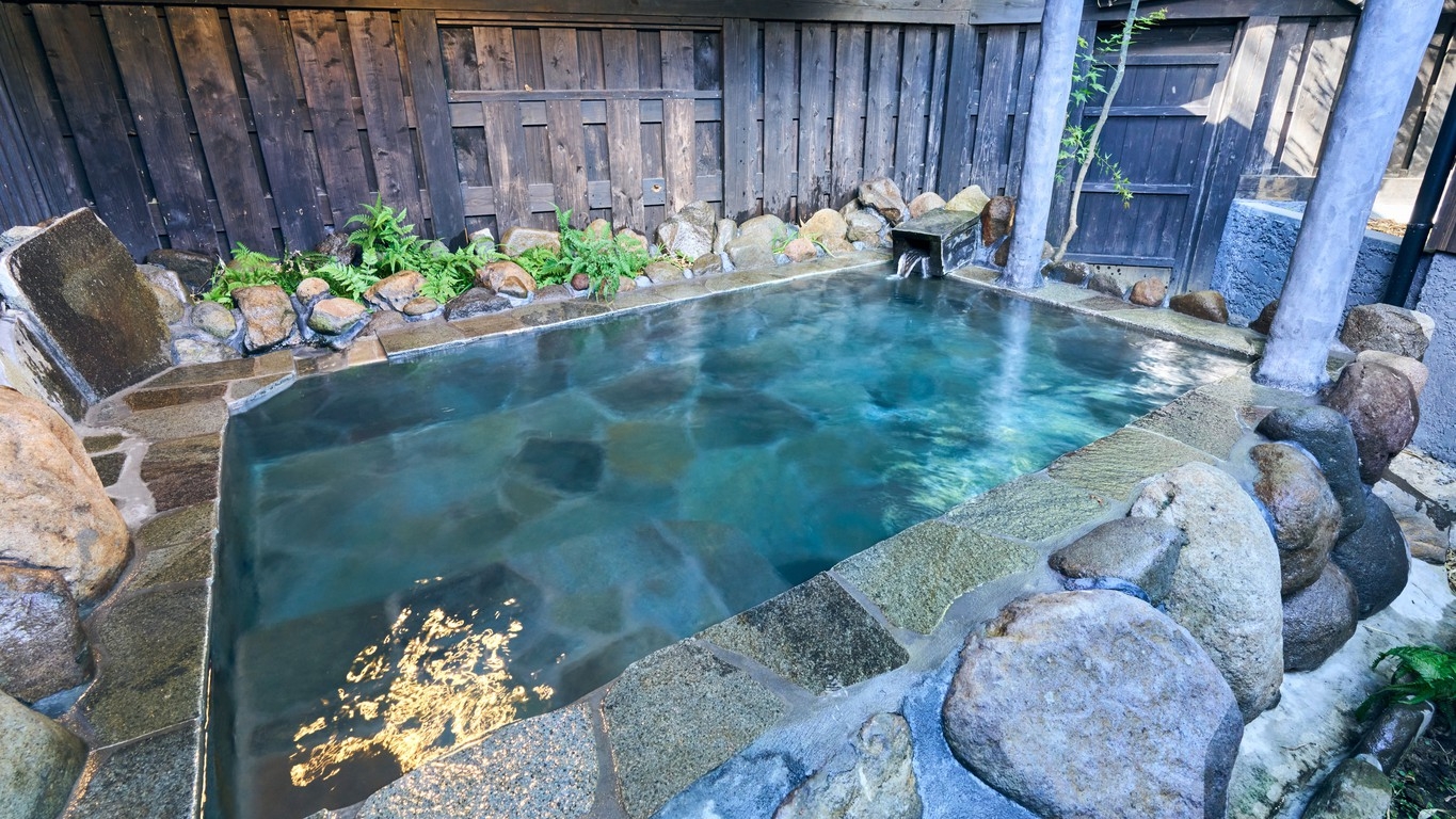 別館・平屋造りの2間続きの和室。お部屋には岩盤浴、切石風呂と五右衛門風呂と2つ御座います。夕食は個室で囲炉裏料理です。