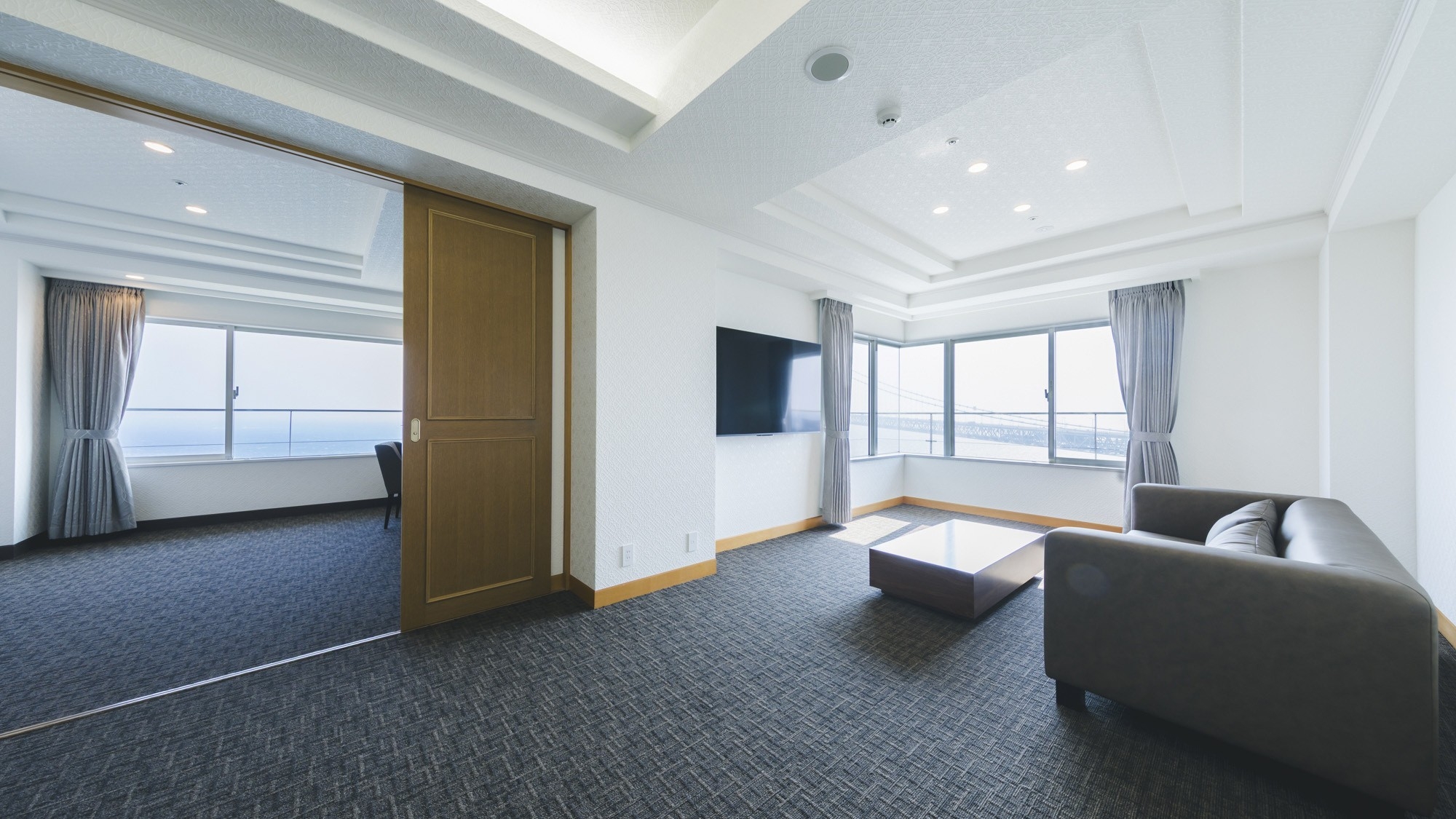 本館最上階(13F)■感動絶景■ジャグジー&ビューバス■ゆったり140cm幅ベッド■明石海峡大橋&オーシャンビュー■広々贅沢な寝室+リビングルーム