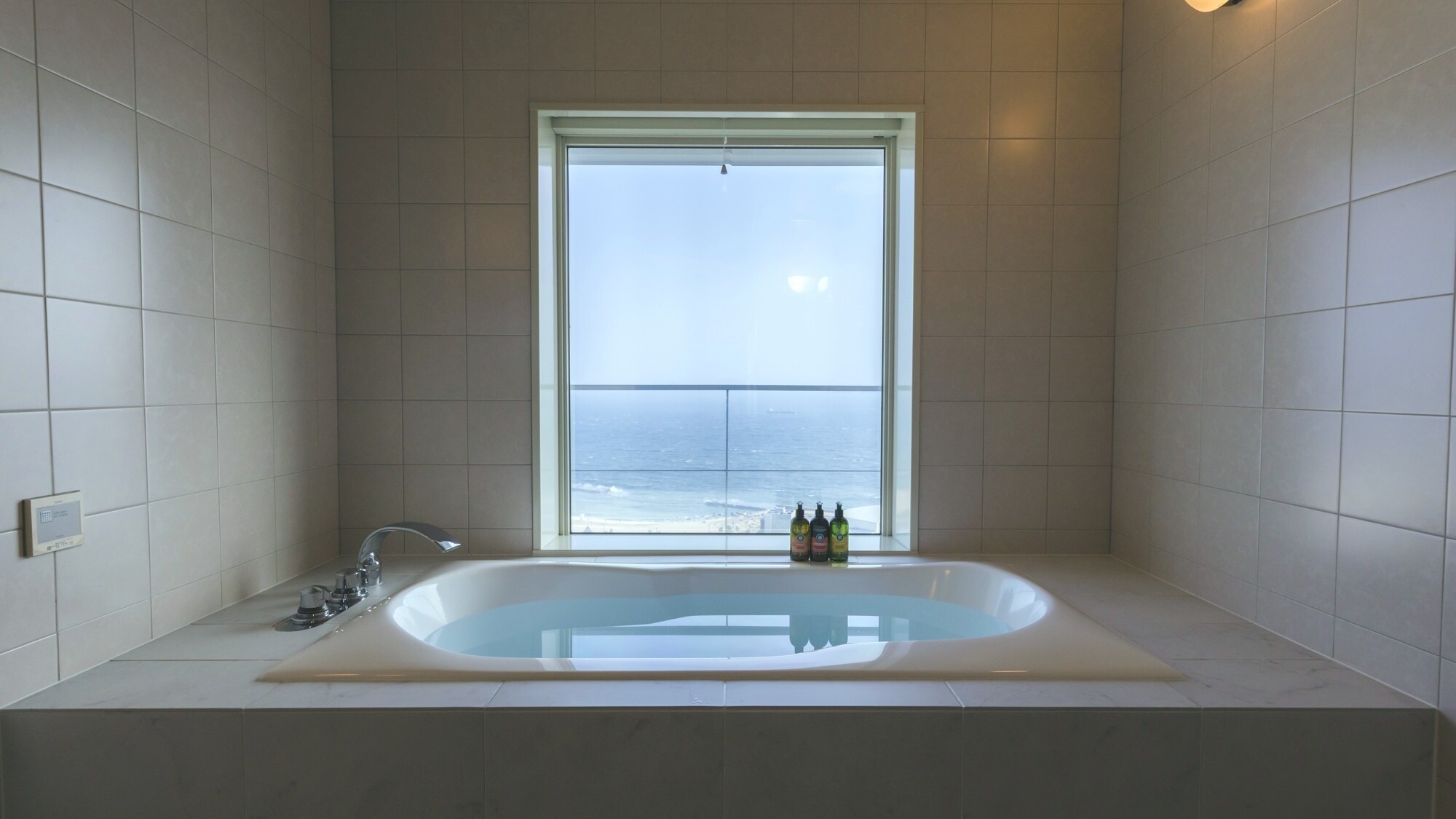 新館最上階(8F)■140cm幅ベッド■窓いっぱいの景色を楽しむビューバスルーム■客室内バス・トイレ別■Refaドライヤー&シャワーヘッド■シモンズ製ベッド