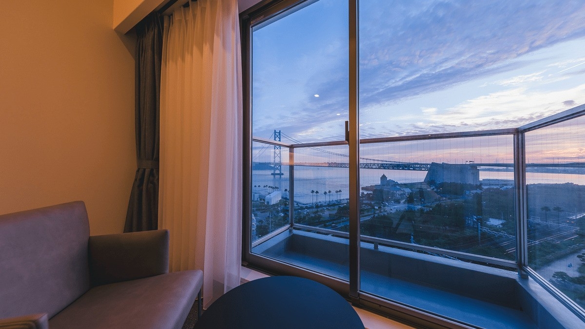 本館最上階(13F)■感動絶景■ジャグジー&ビューバス■120cm幅ベッド2台■明石海峡大橋&オーシャンビュー■特別な日に過ごしたい広々空間