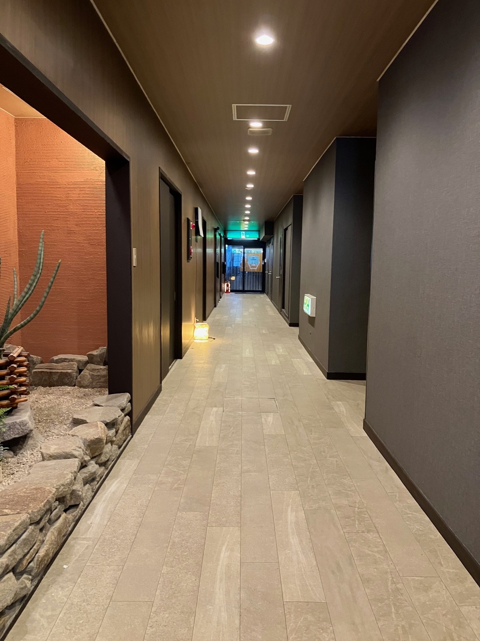 旧館タイプの隣接館【簾〜ren〜】は外の渡り廊下で繋がっています。お風呂トイレはついておりません。各浴場、フロアの共用トを入れをご利用下さい。景観は建物側です。