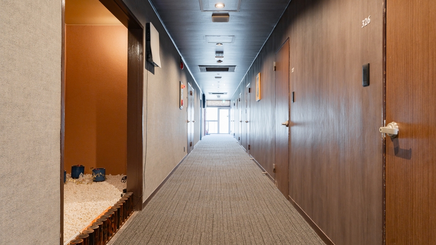 旧館タイプの隣接館【簾〜ren〜】は外の渡り廊下で繋がっています。お風呂はついておりませんのでホテル華乃湯の各浴場をご利用下さい。景観は建物側で望めません。