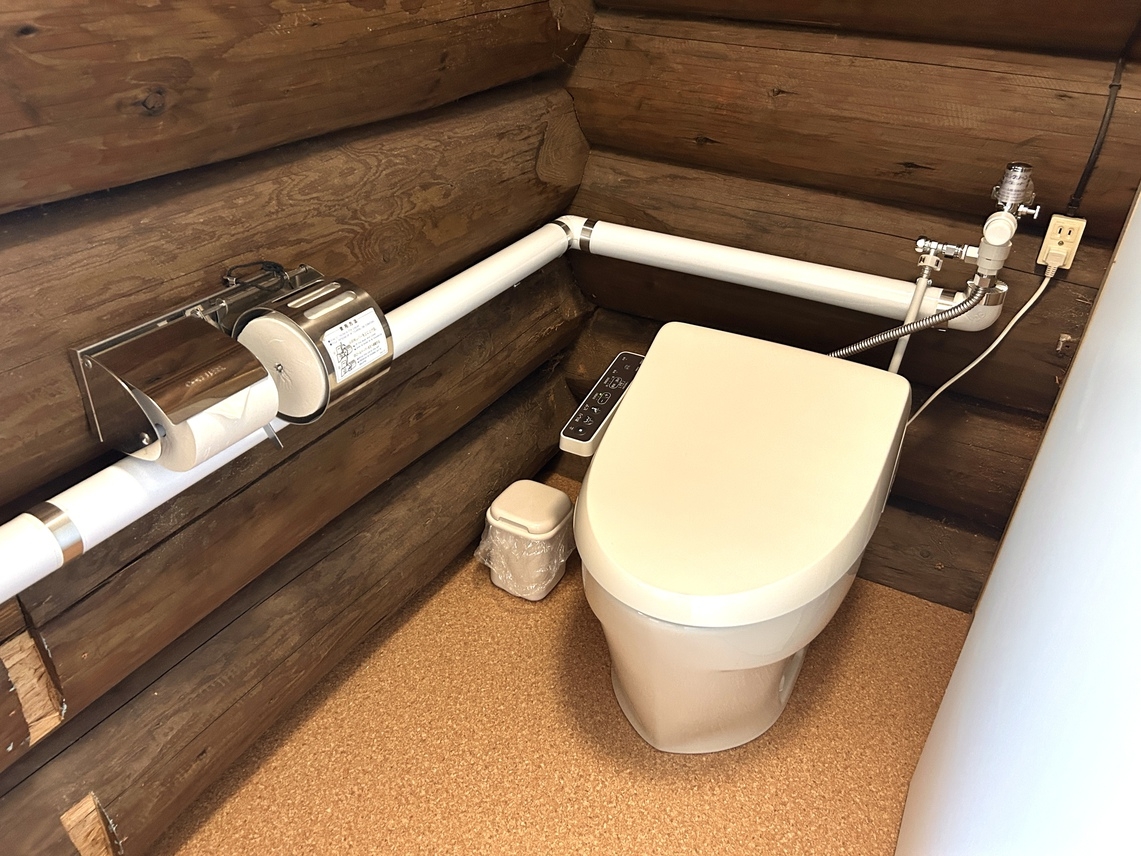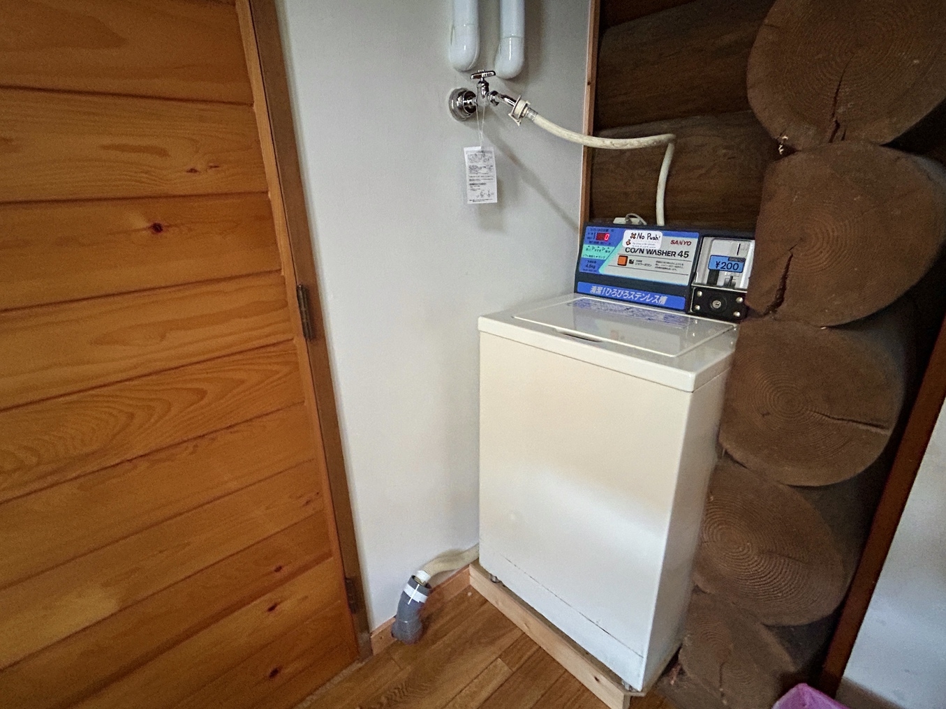 定員8名まで宿泊可能。簡易キッチン、冷蔵庫、トイレ、シャワー/脱衣所、洗面台、洗濯機、TV、無料Wi-fiがログハウス内にございます。
