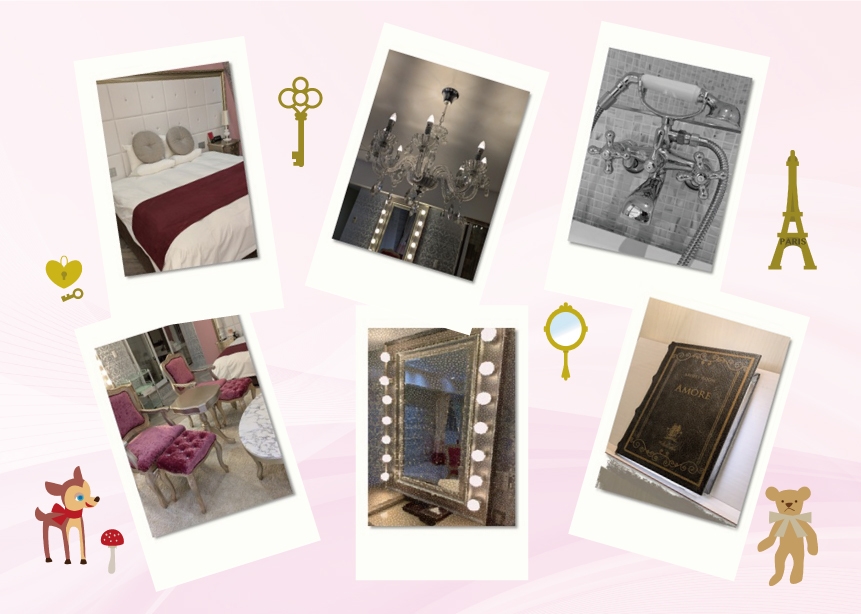 プリンセスが住んでいるようなピンクを基調とした客室で、恋人やご友人と