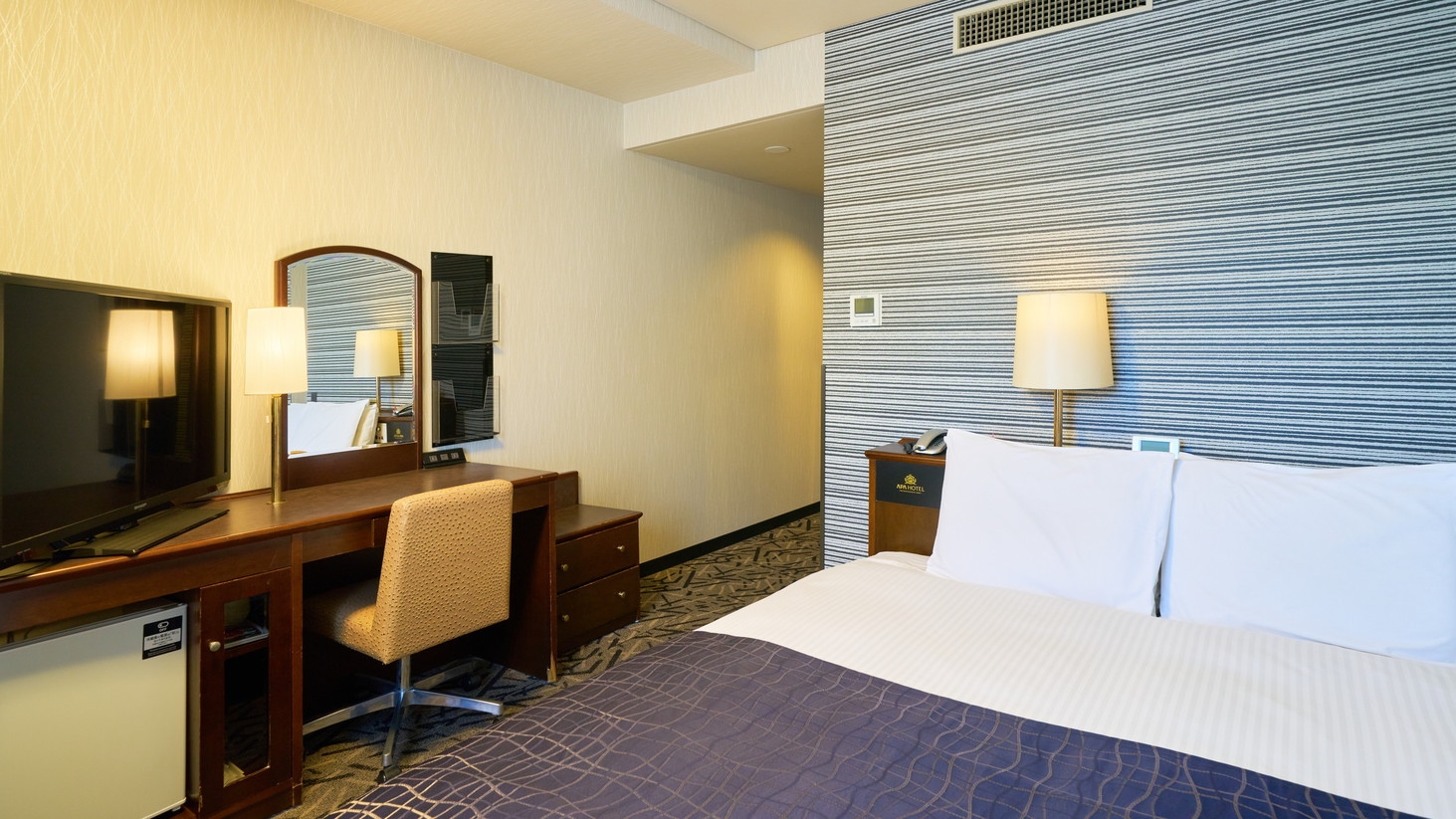 ■喫煙指定■140cm幅ベッド■40型液晶テレビ■LED照明採用■温水洗浄便座■ネット環境:有線LAN完備・Wi-Fi接続無料