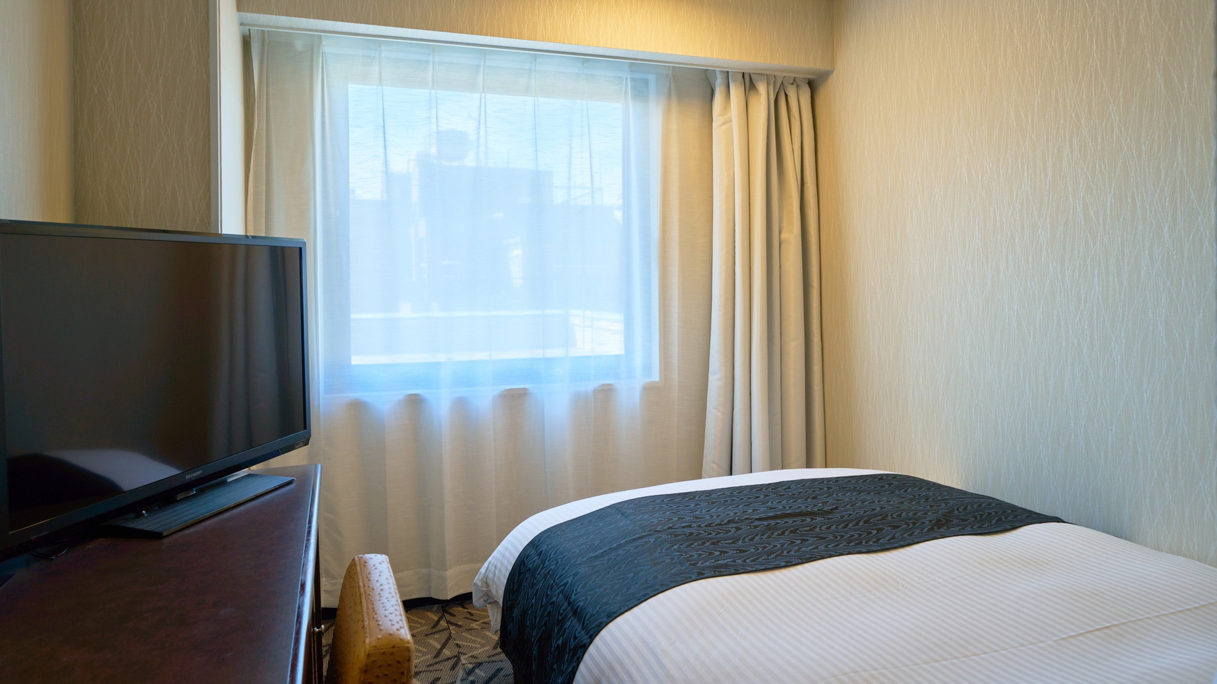 □禁煙指定■120cm幅ワイドベッド■40型液晶テレビ■LED照明採用■温水洗浄便座■ネット環境:有線LAN完備・Wi-Fi接続無料