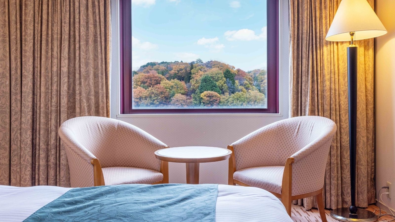 山側・自然豊かな池越しの木々が映える景色がご覧いただけるお部屋です
