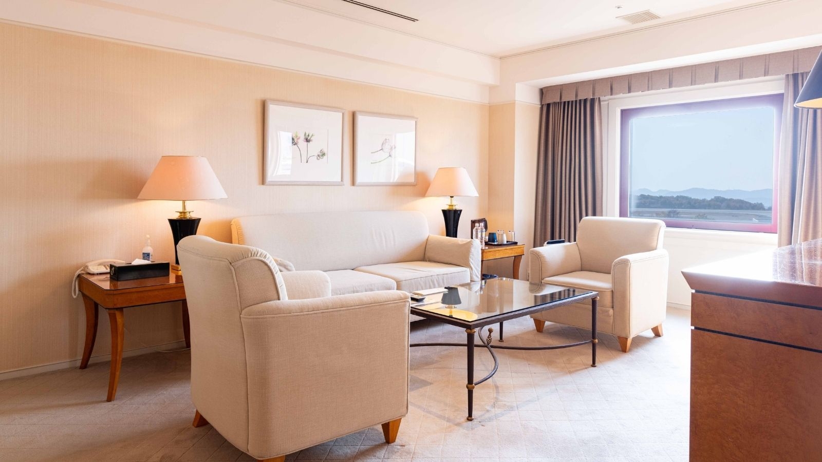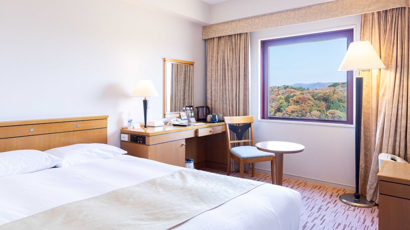 ビュー指定客室からは、四季の移ろいを感じる庭園や空港の景色が、眺めるだけで落ち着きをもたらします。
