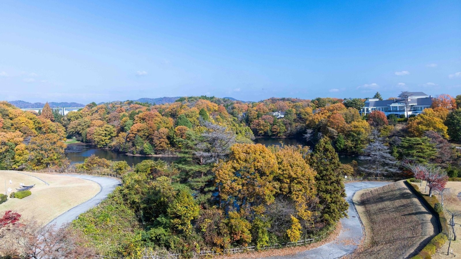 ②三景園と空港を望む、癒しの景観