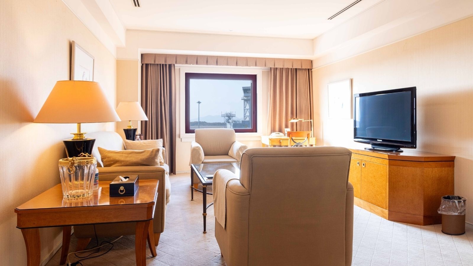 行き来する飛行機、空港の夜景など、お部屋のソファでゆったりと風景をお楽しみください。