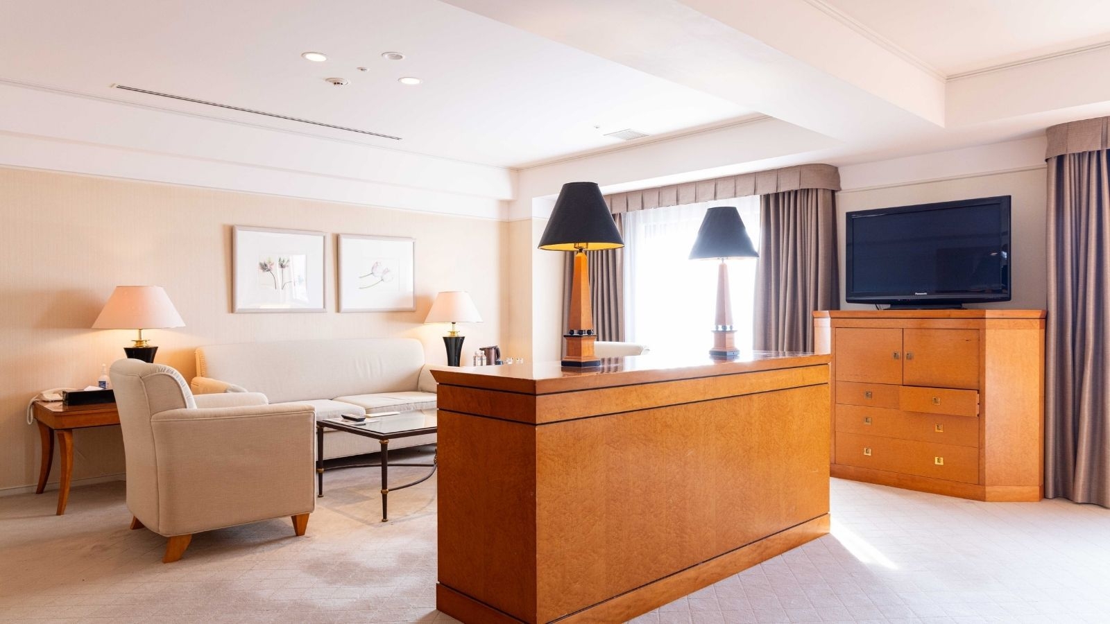 リビングとベッドルームに分かれた贅沢なスイートルーム。69平米・120cmセミダブルベッド2台エキストラ1台・インターネット無料・空気清浄機加湿器完備