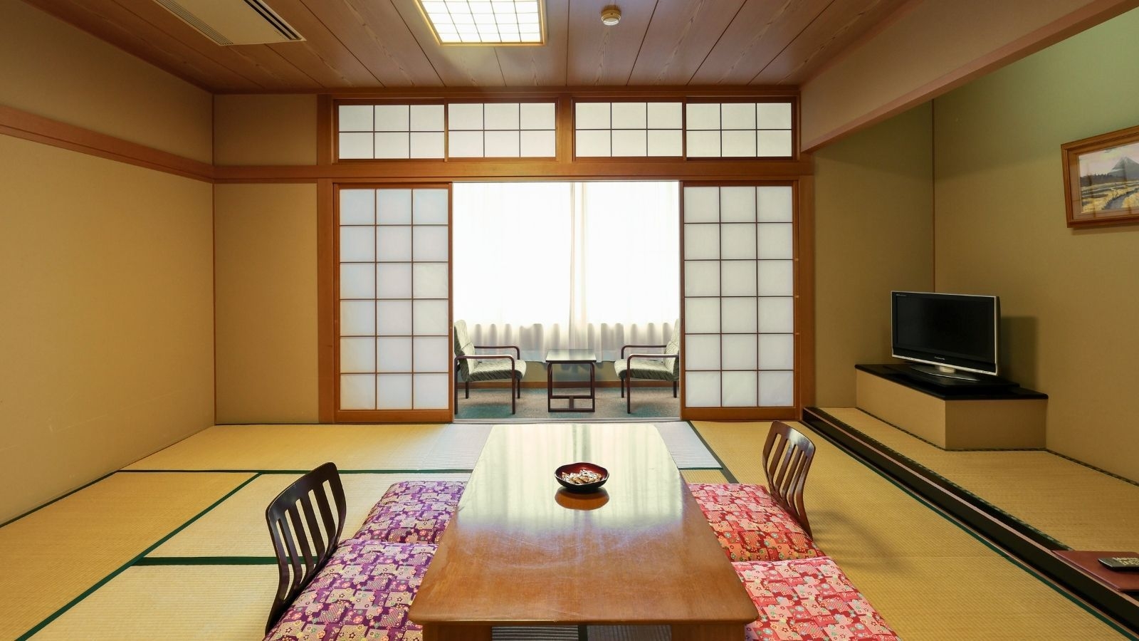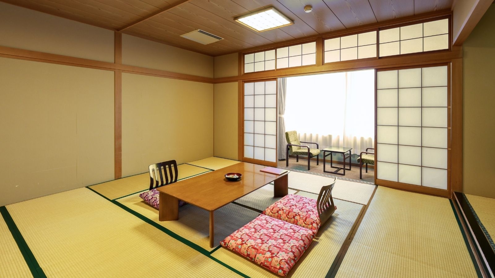 10畳〜12.5畳の和室を含むスタンダード客室(定員:7名)/ 四季折々の花々が彩る中庭を一望できます。