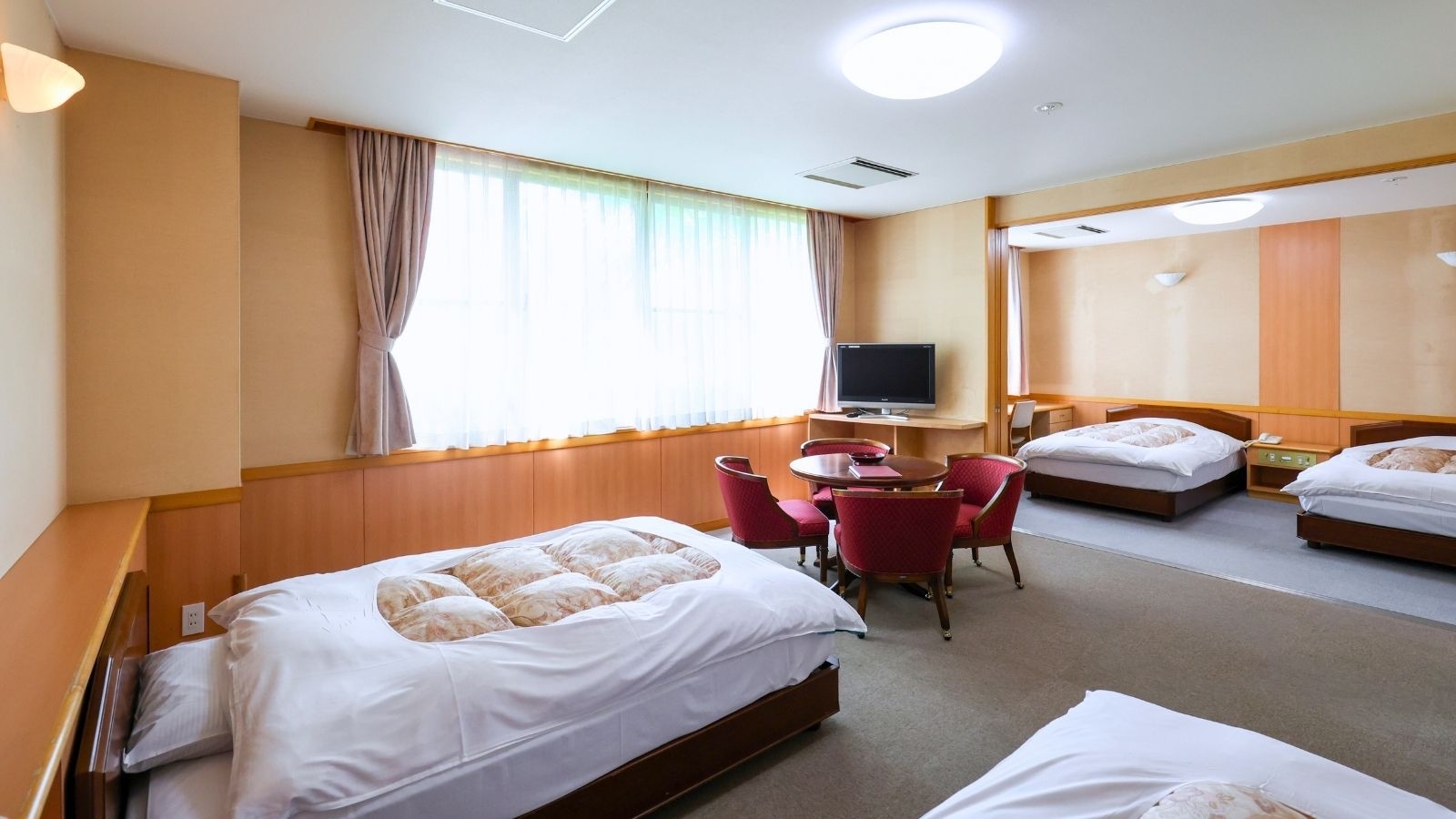 洋室4ベッドのバリアフリー客室(店員:4名)/ 広々約65平米 / 段差のないフラット床 / 2ベッドずつのルームセパレート可能