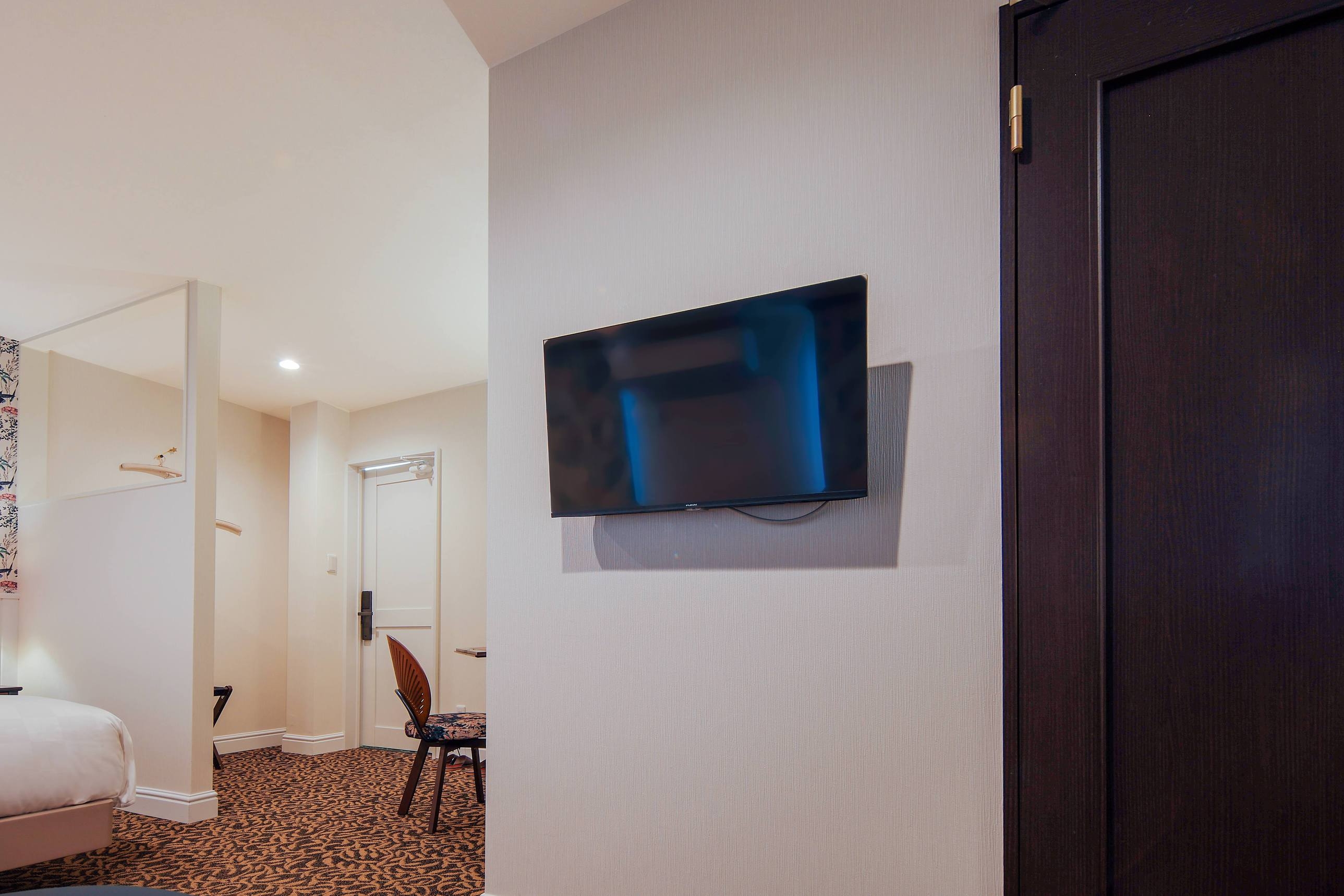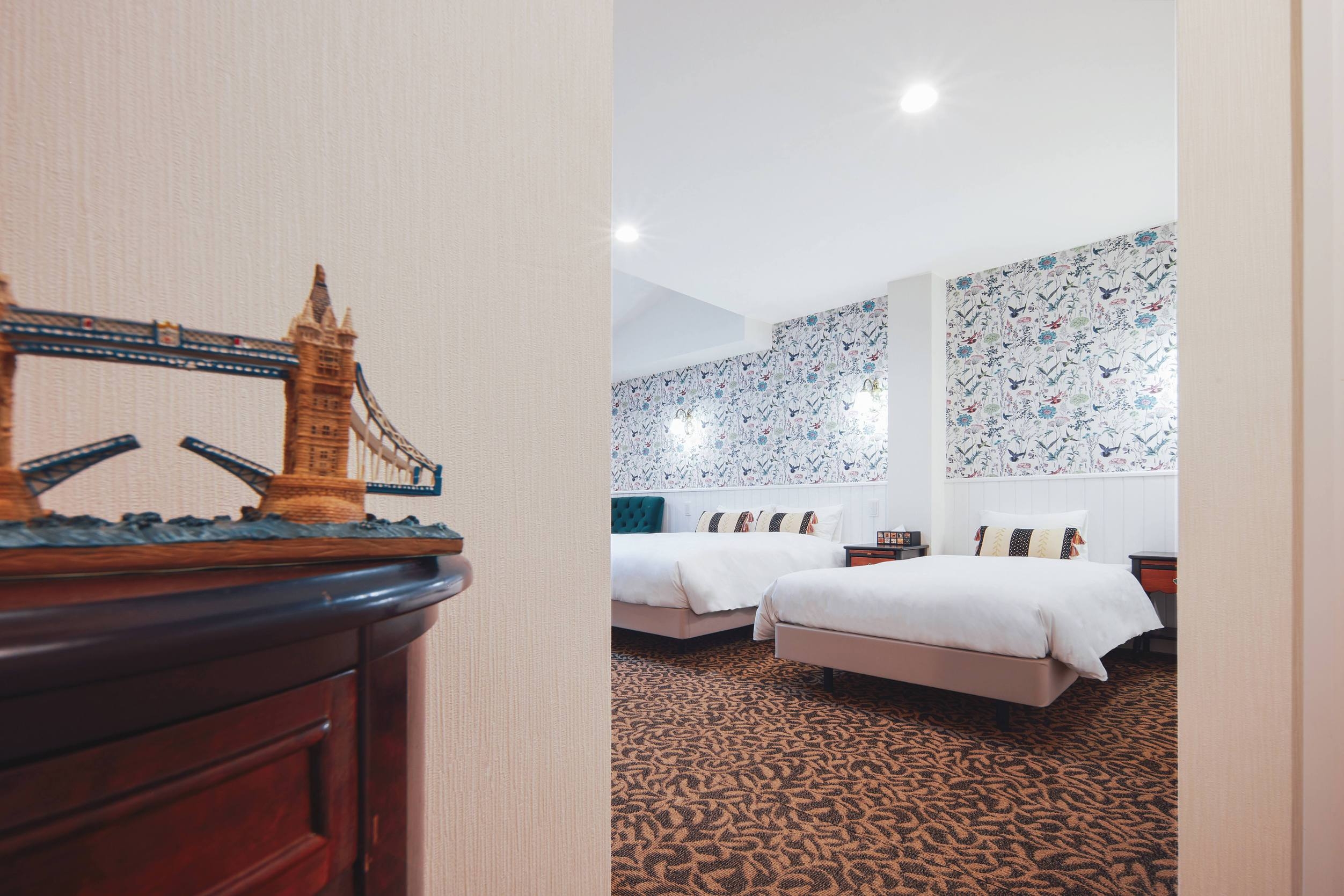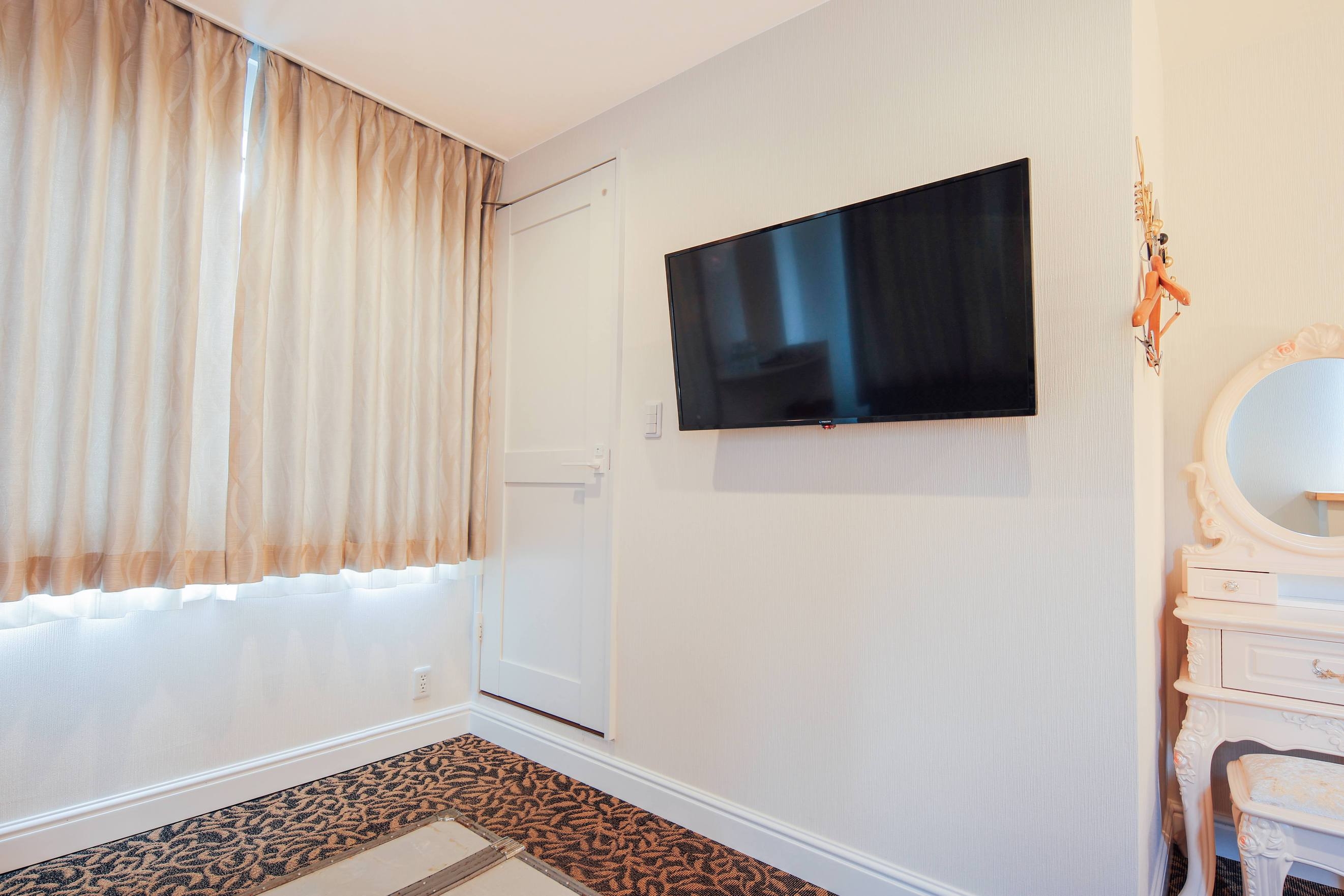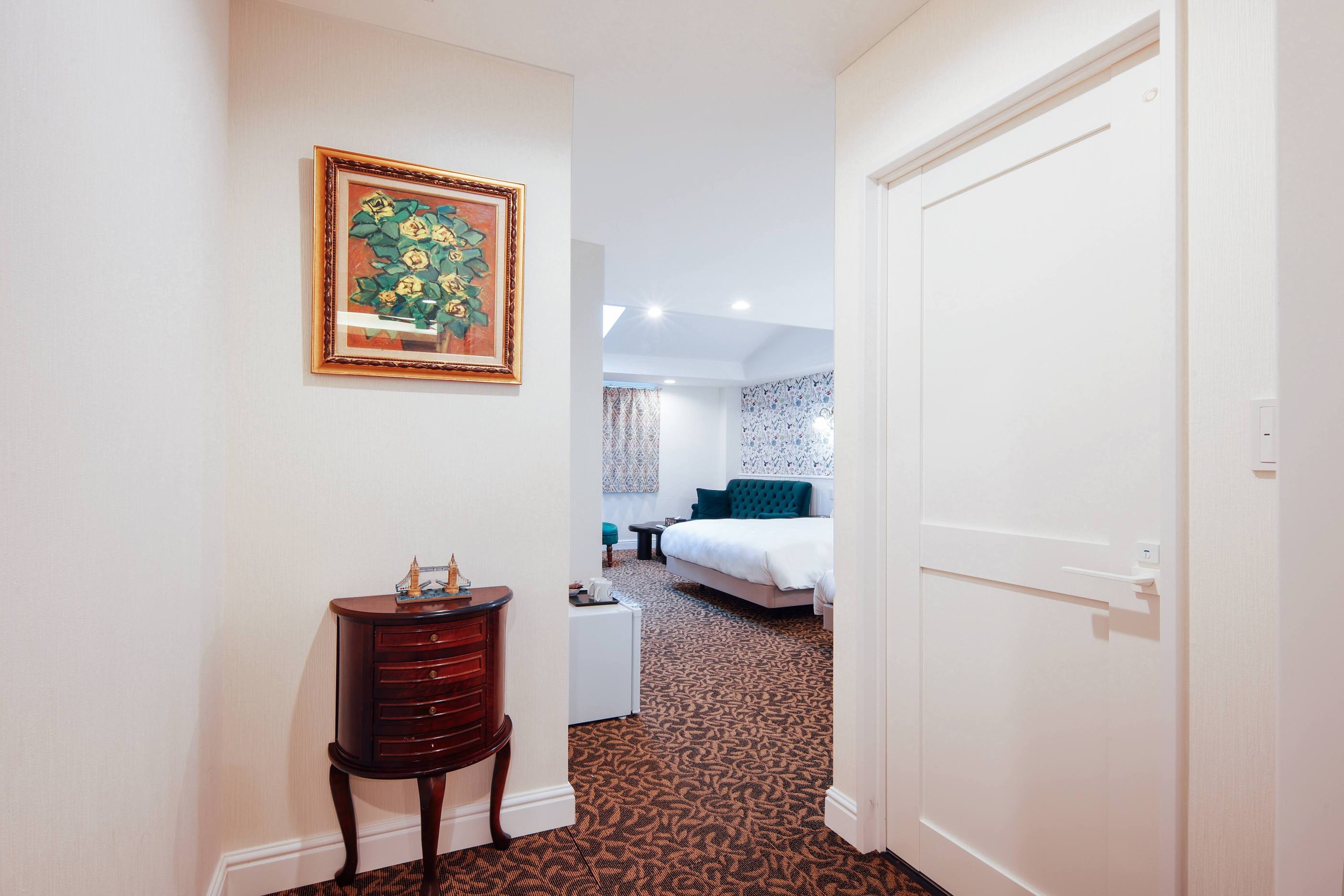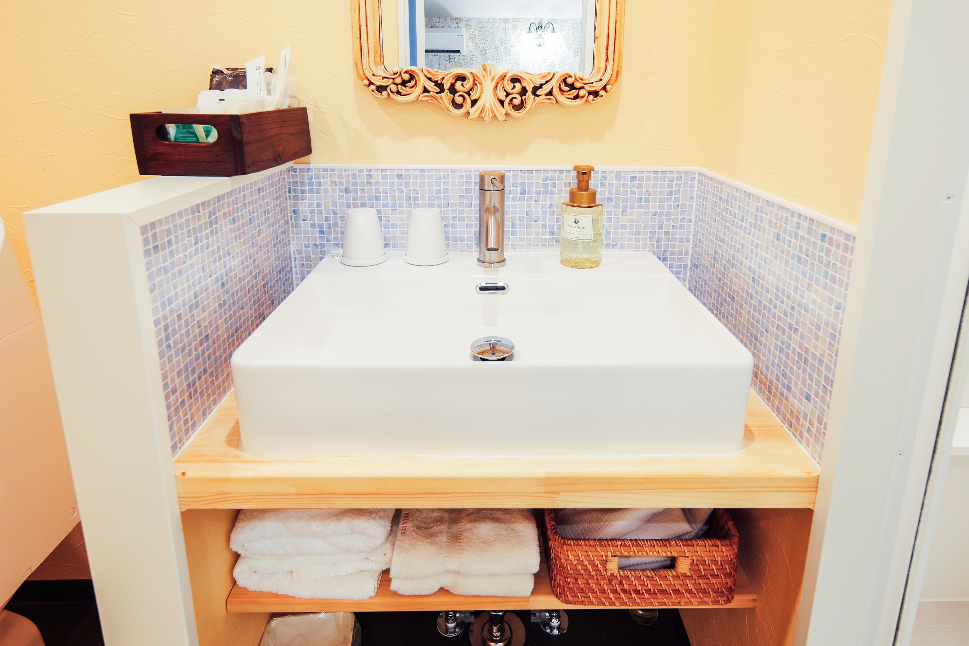 2016年2月に内装工事。4名様ご利用のお部屋です。2台のセミダブルベッドを挟んでリビングスペースがあります。お風呂は、浴槽と洗い場が別になっているタイプです。