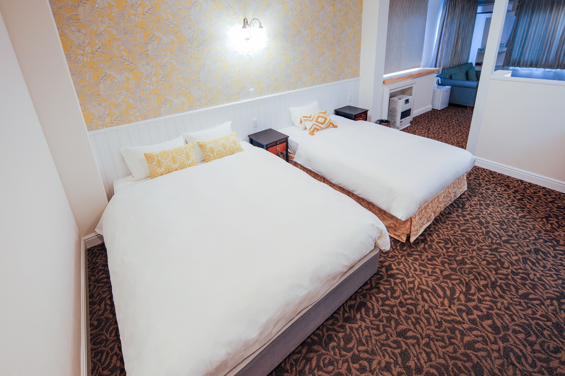 16年1月にリニューアル。シングルベッド3台とリビングスペースの広々としたお部屋です。