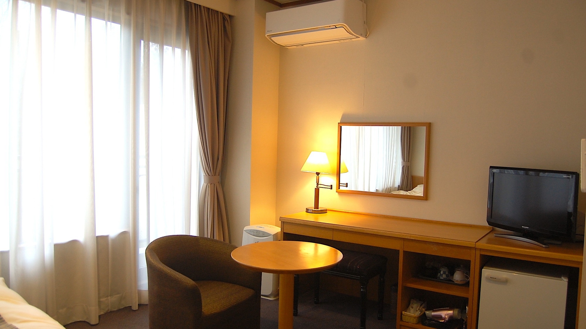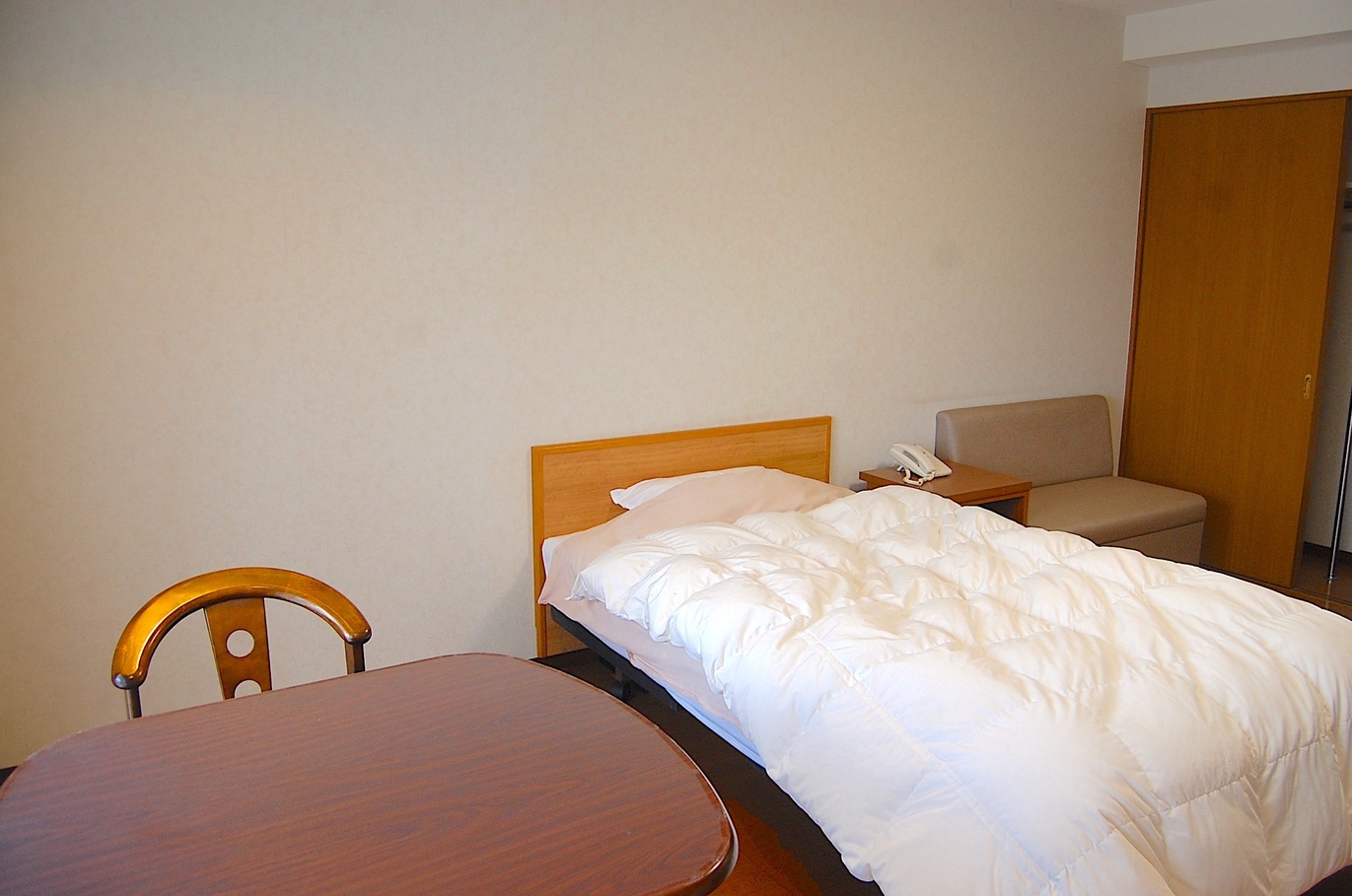 西館2階洋室シングルルームです。眺望は望めません。