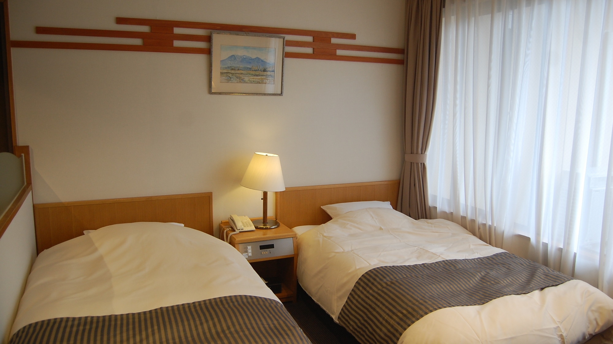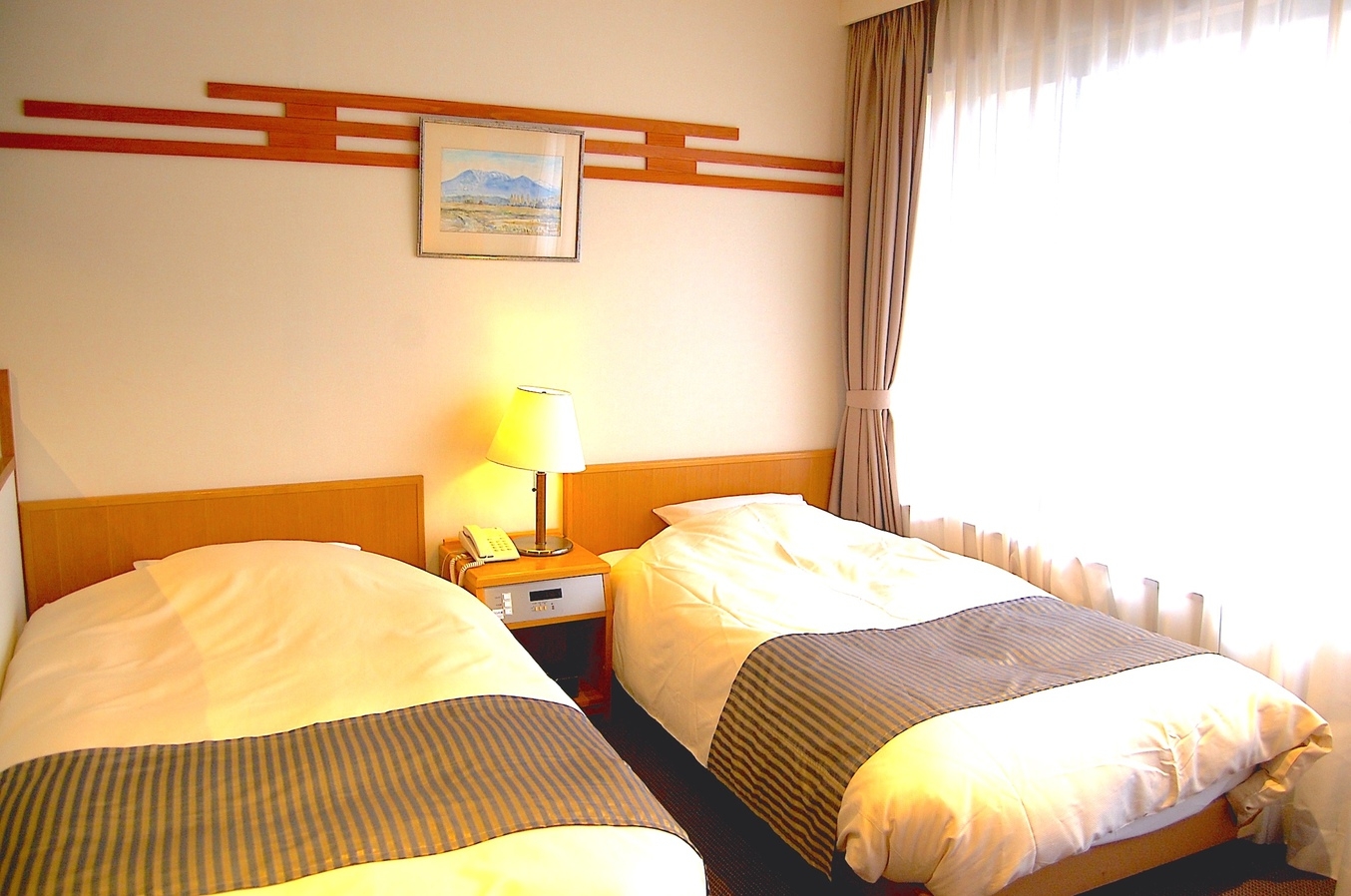 大浴場からも程近い、2ベッドを備えた禁煙タイプの洋室です。