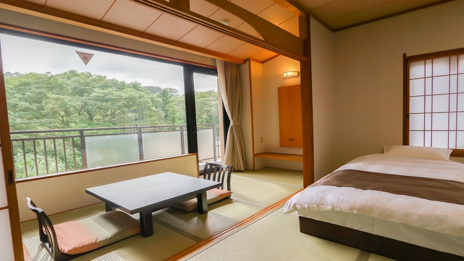 大浴場からも程近く、落ち着いた雰囲気漂う純和風和室にツインベッドをご用意。次の間の部分が堀炬燵形式になっておりますので、足を伸ばしてゆったりとお寛ぎ頂けます。