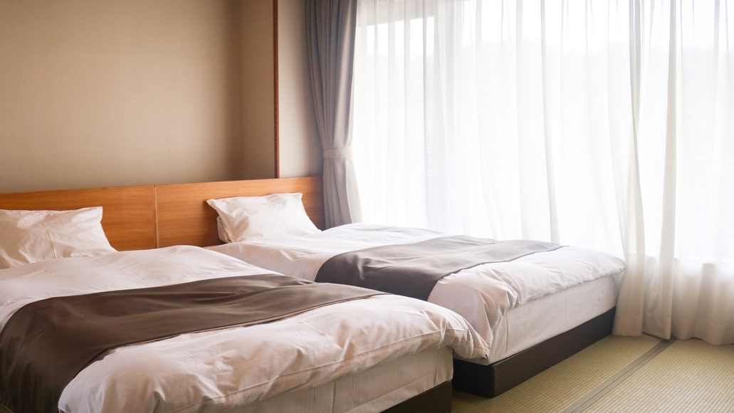 大浴場からも程近く、落ち着いた雰囲気漂う純和風和室にツインベッドをご用意。 角部屋ですのでお隣の音が気になるお客様や賑やかなファミリー様におすすめのお部屋です。