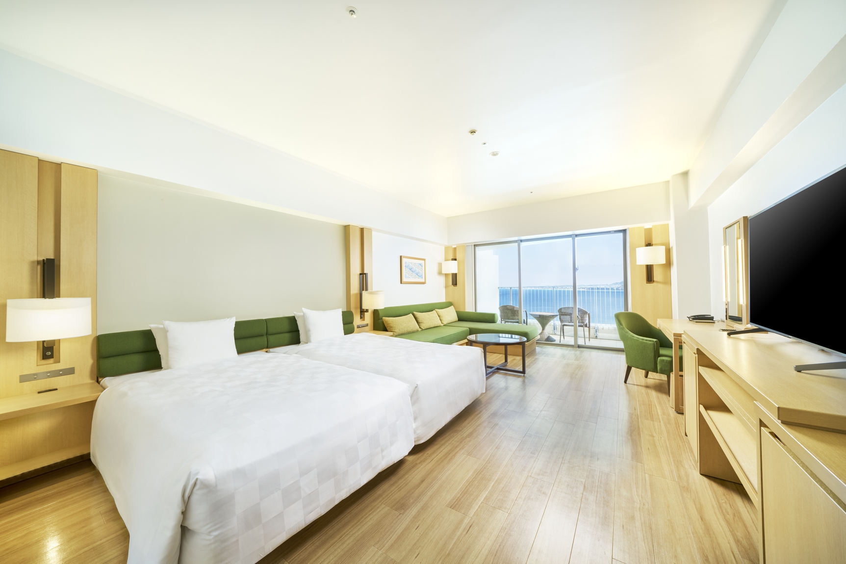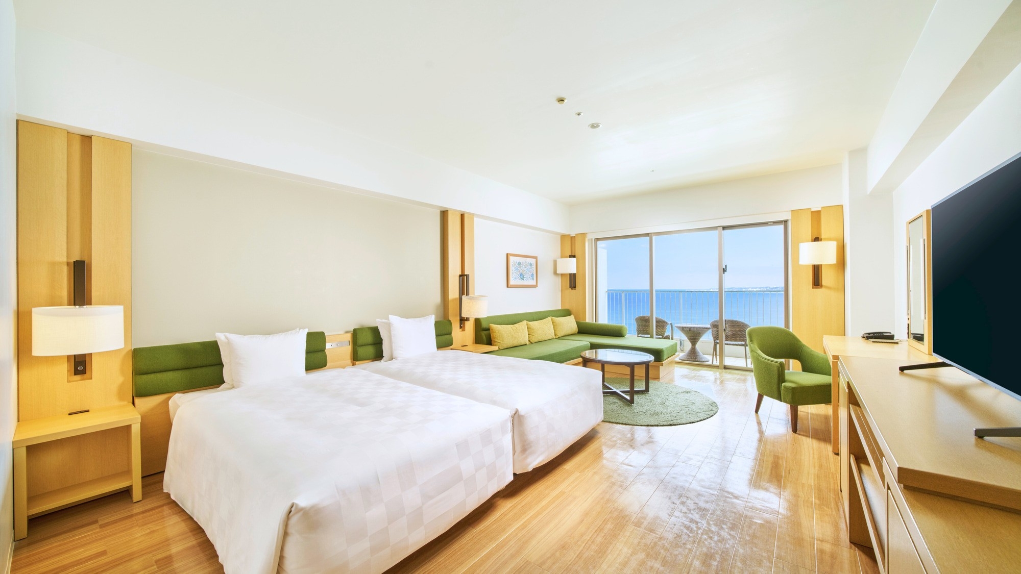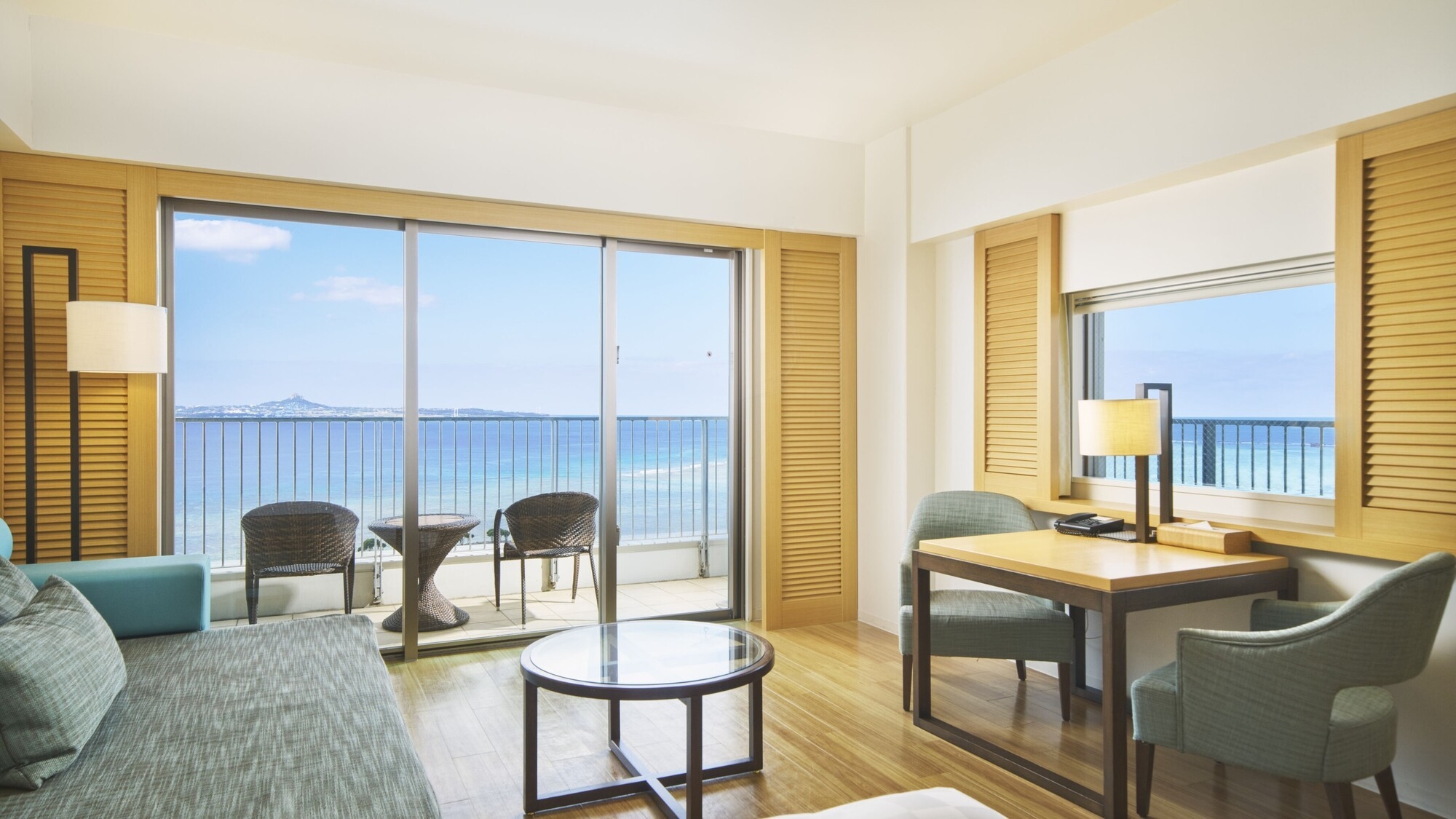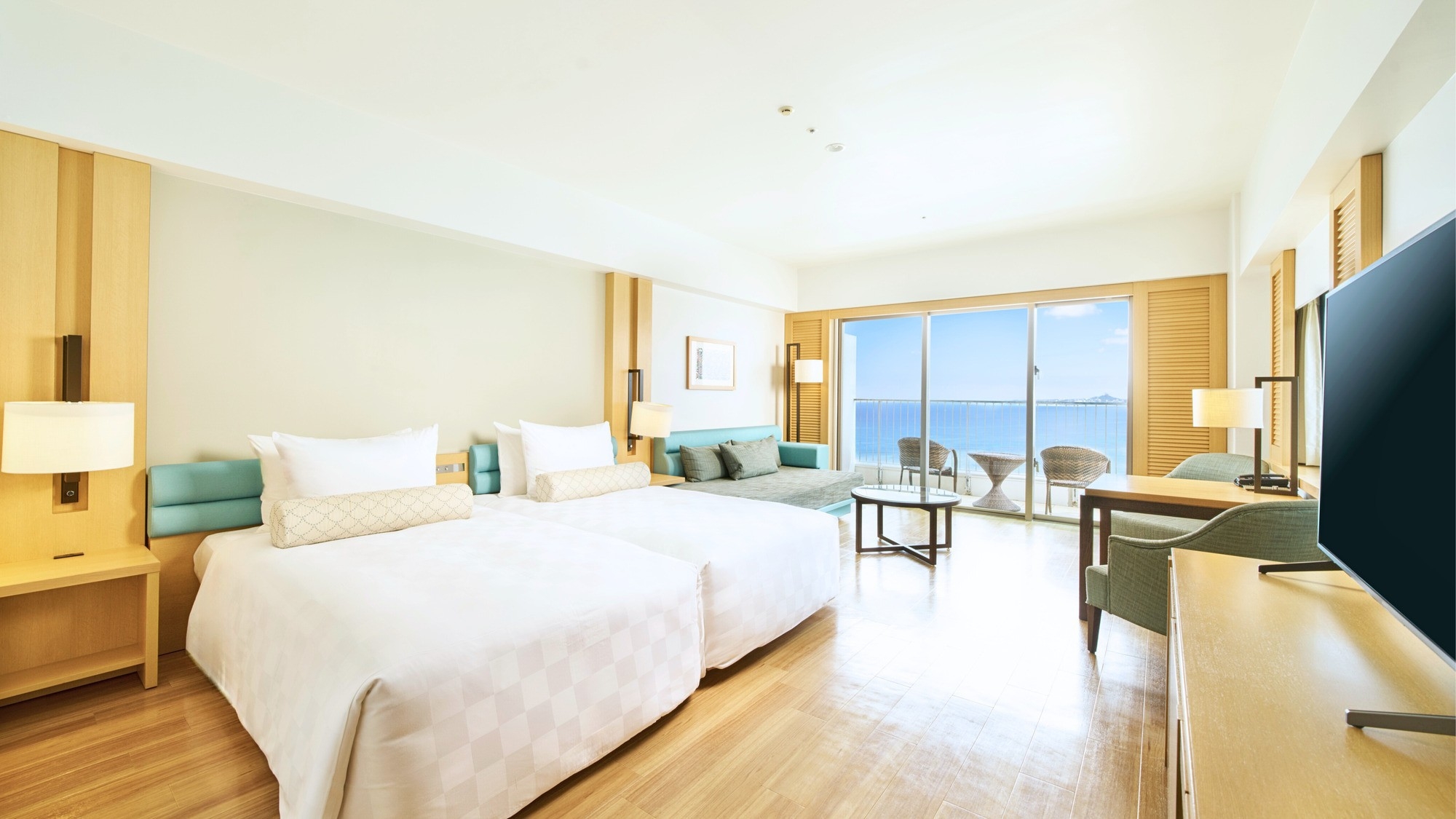 オーシャンツインルームが中扉でつながるコネクティングルーム(50平米×2部屋)。ファミリーやグループ旅行におすすめです。