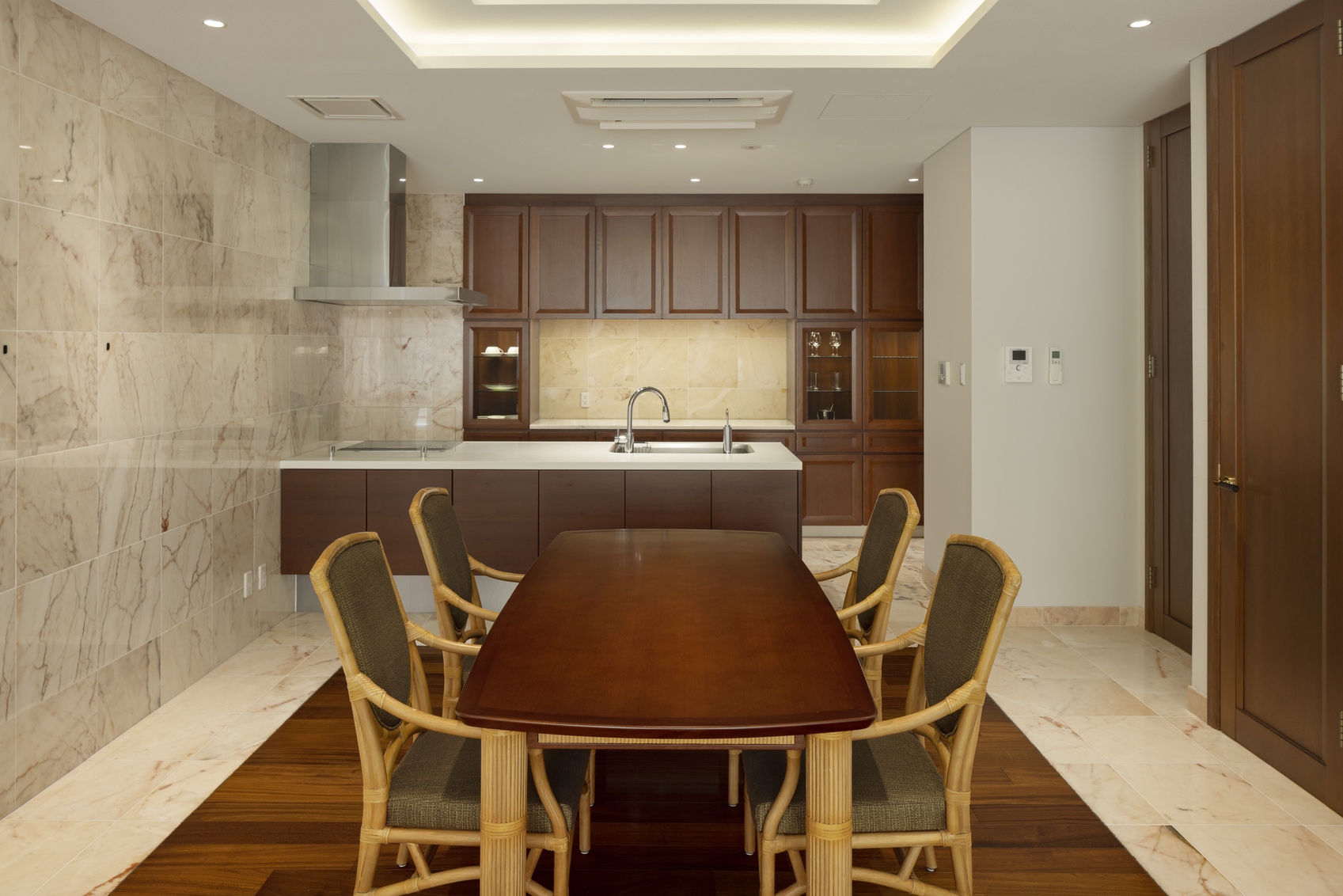 暮らすような滞在が可能 中長期ステイにおすすめシステムキッチン、調理器具、家庭用冷蔵庫、乾燥機付き洗濯機(洗剤付き)、ウォークインクローゼット、Wi-Fiなど、心地良い滞在をサポートする充実の設備。