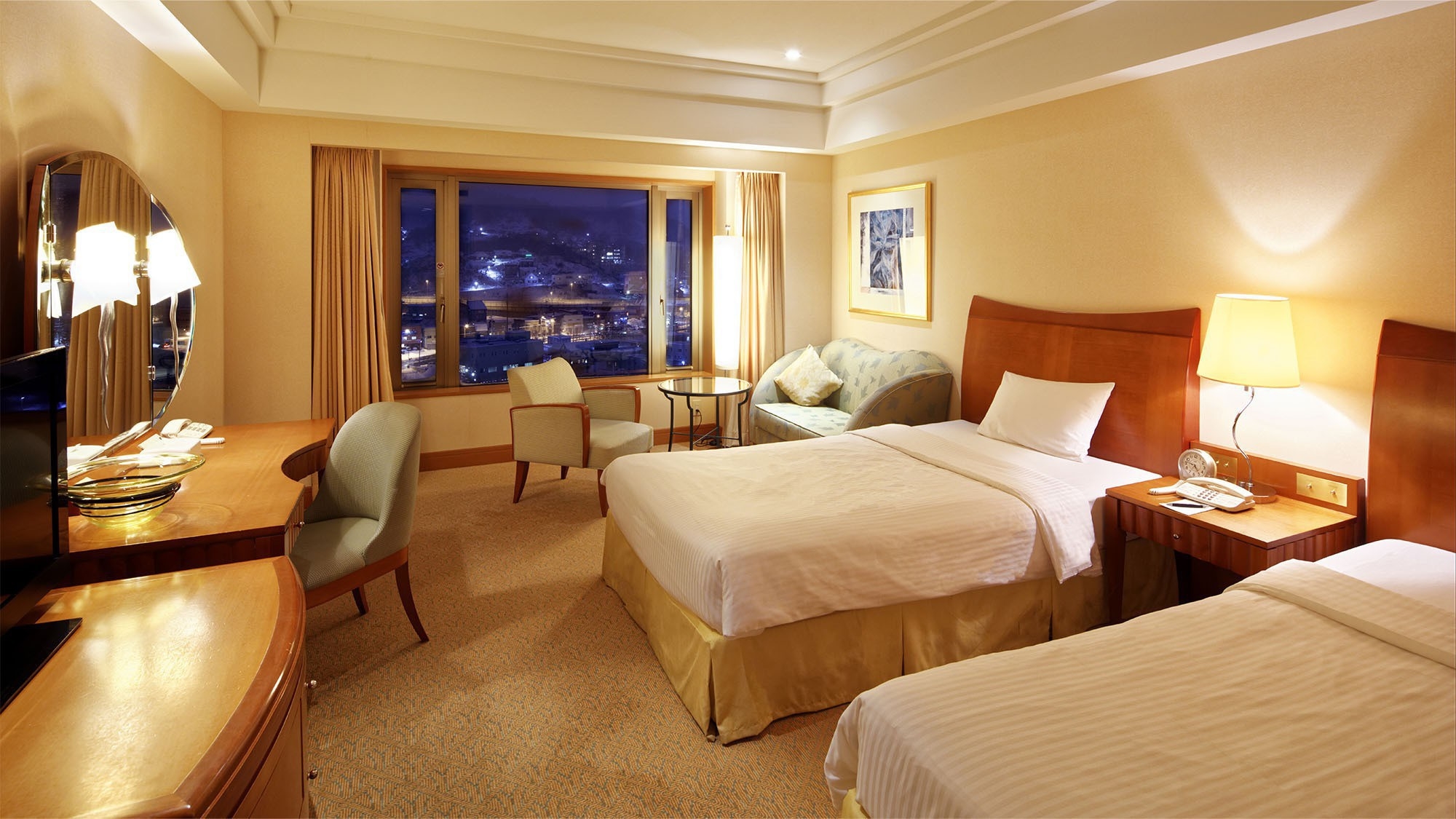 【禁煙ルーム】小樽市内や天狗山の風景が自慢の32平米のマウンテンビュールーム。Wi-Fi無料■3名利用はツイン+エキストラベッド幅110cm
